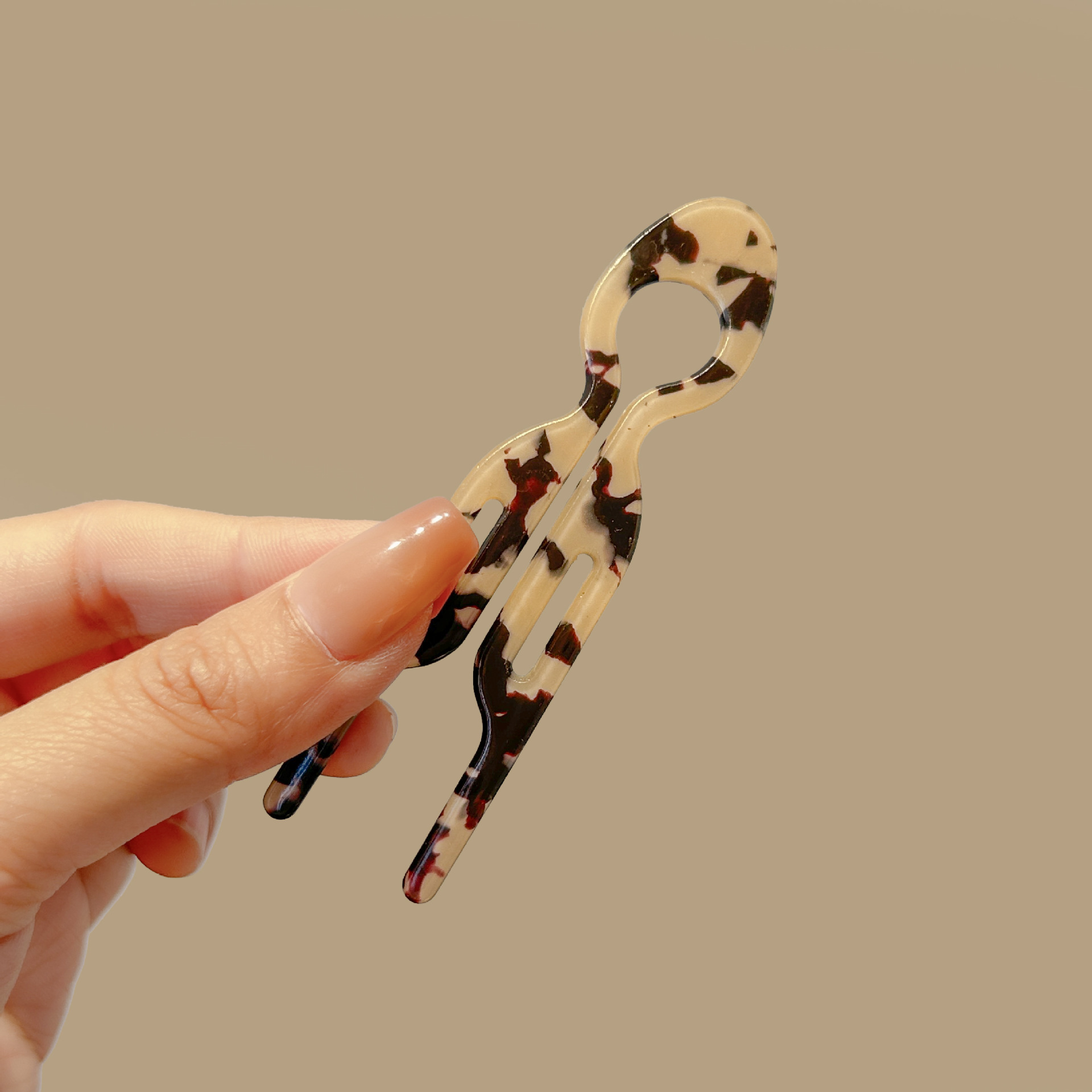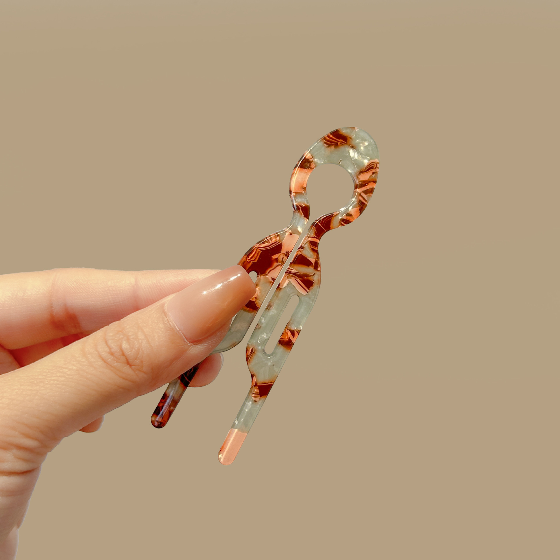 acetate fishtail hairpin-green brown (with logo)