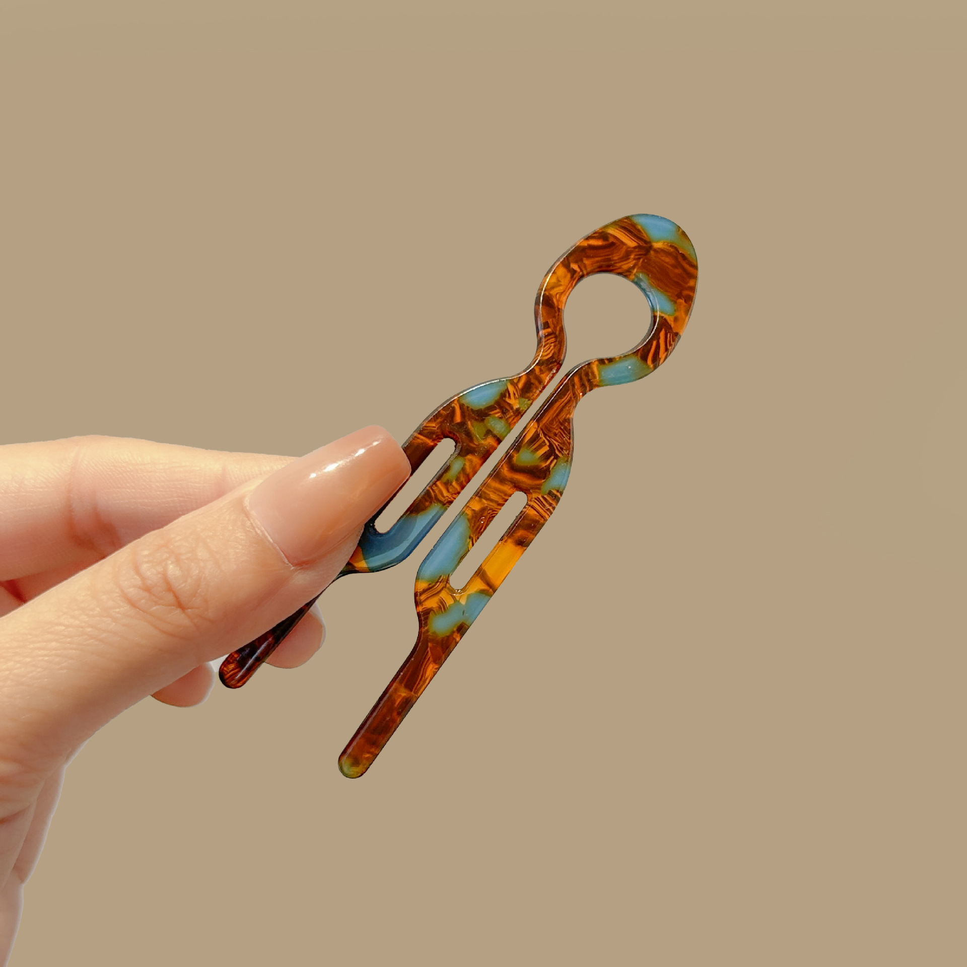 acetate fishtail hairpin-blue coffee (with logo)