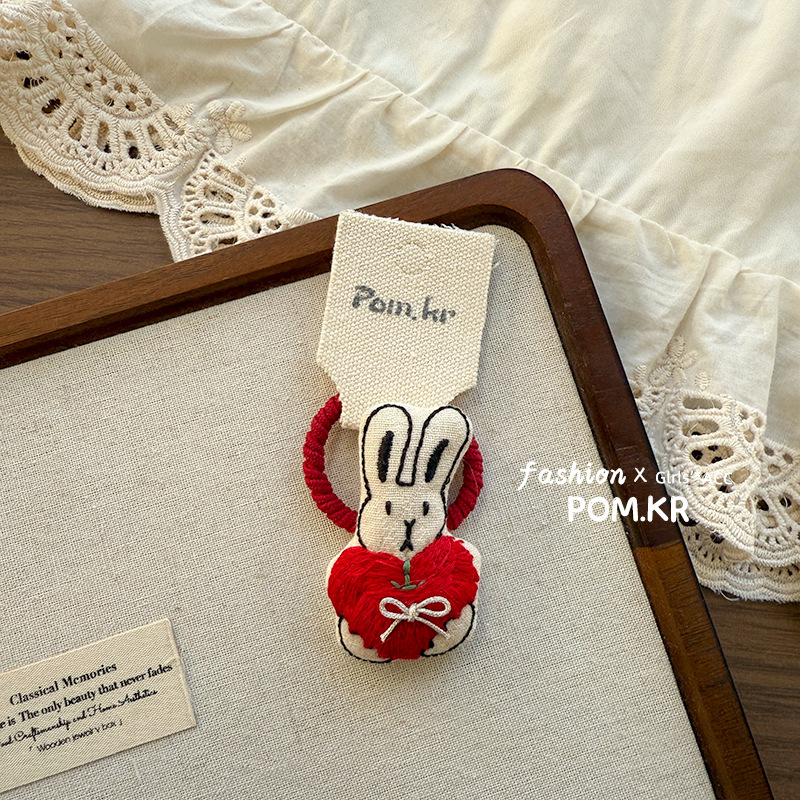 [4] red love rabbit hair ring