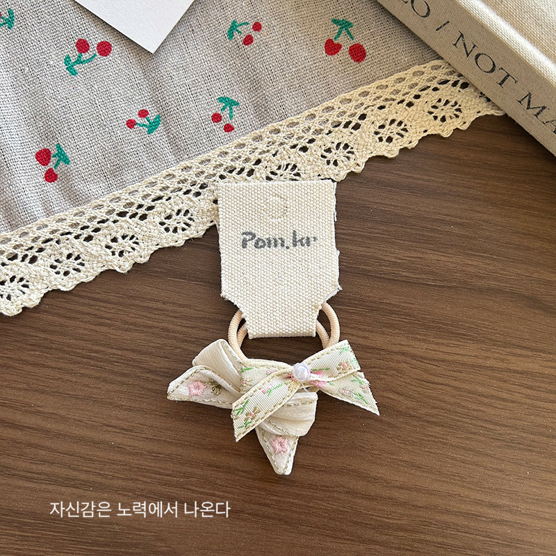 [2] beige bowknot hair ring