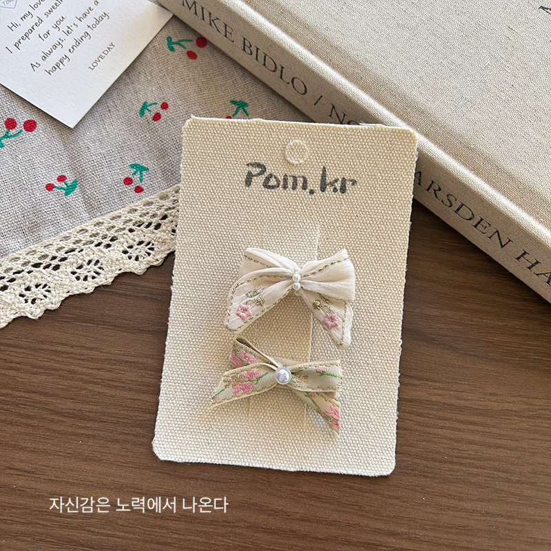 [6] beige bow barrettes