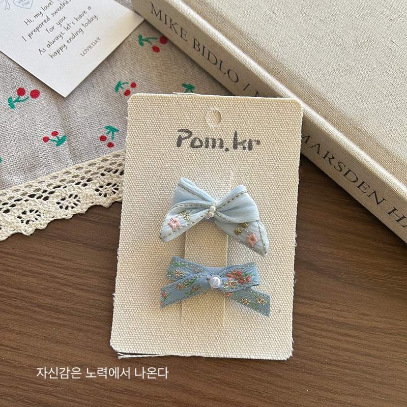 [5] blue bow barrettes