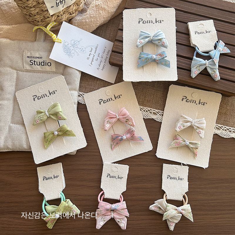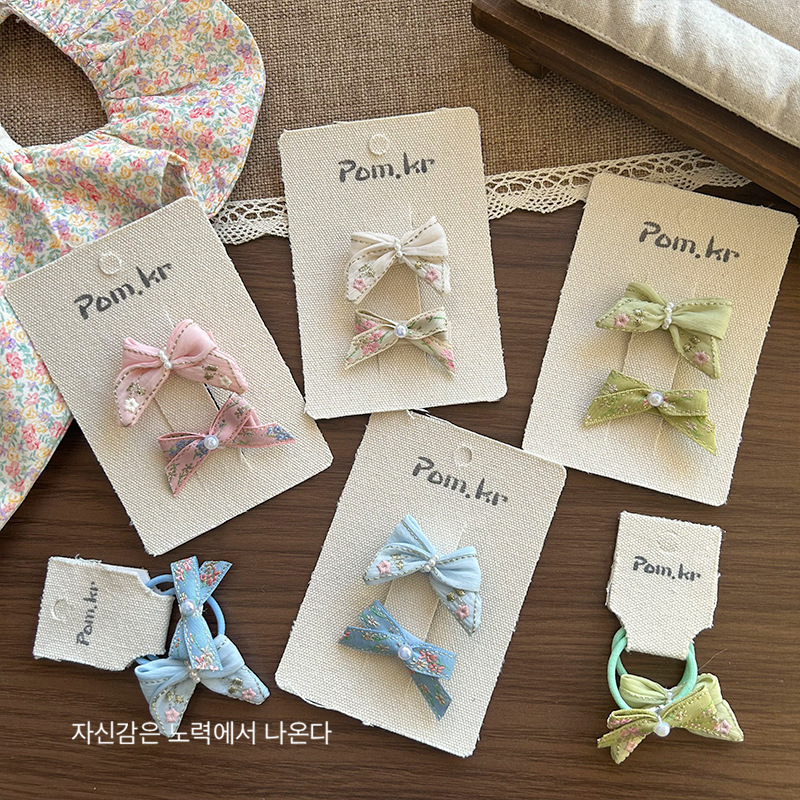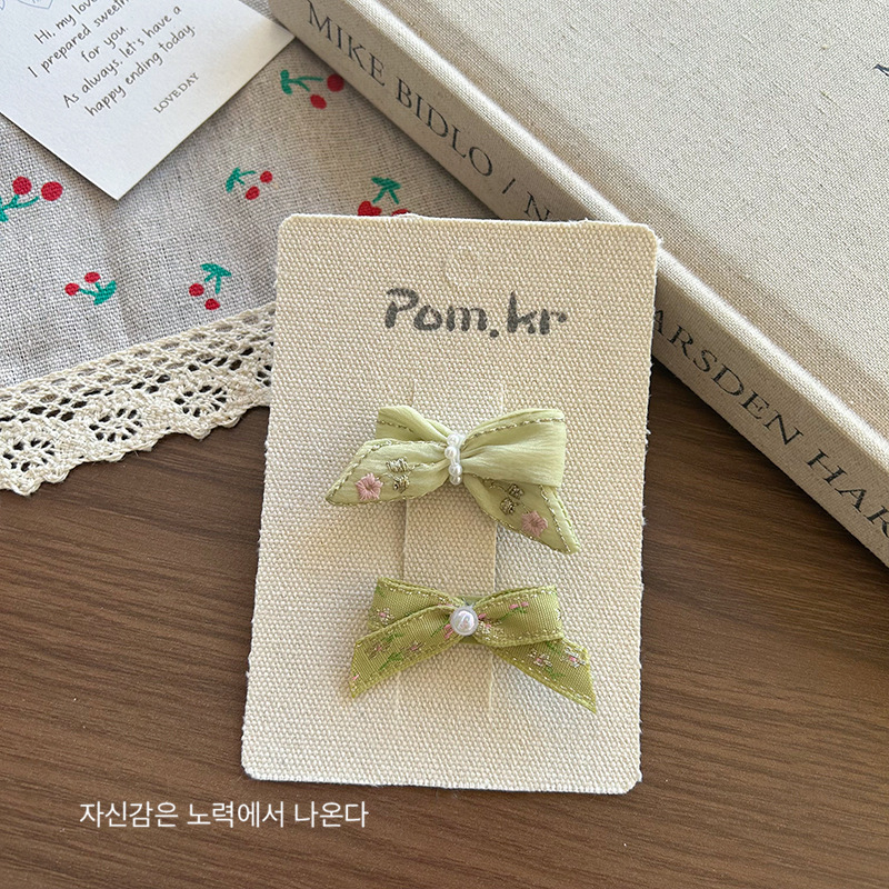 [8] green bow barrettes