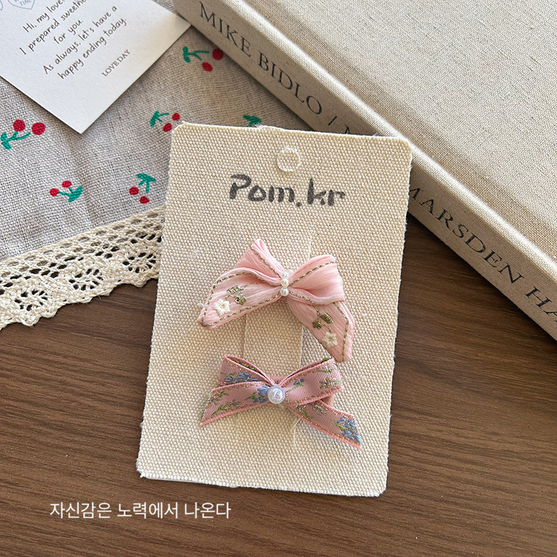 [7] pink bow barrettes