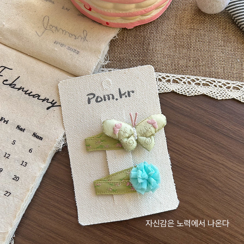 [2] green butterfly barrettes
