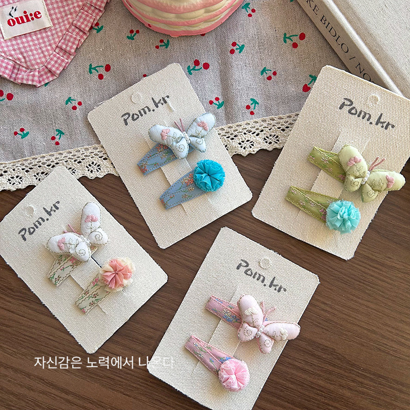 [1] pink butterfly barrettes