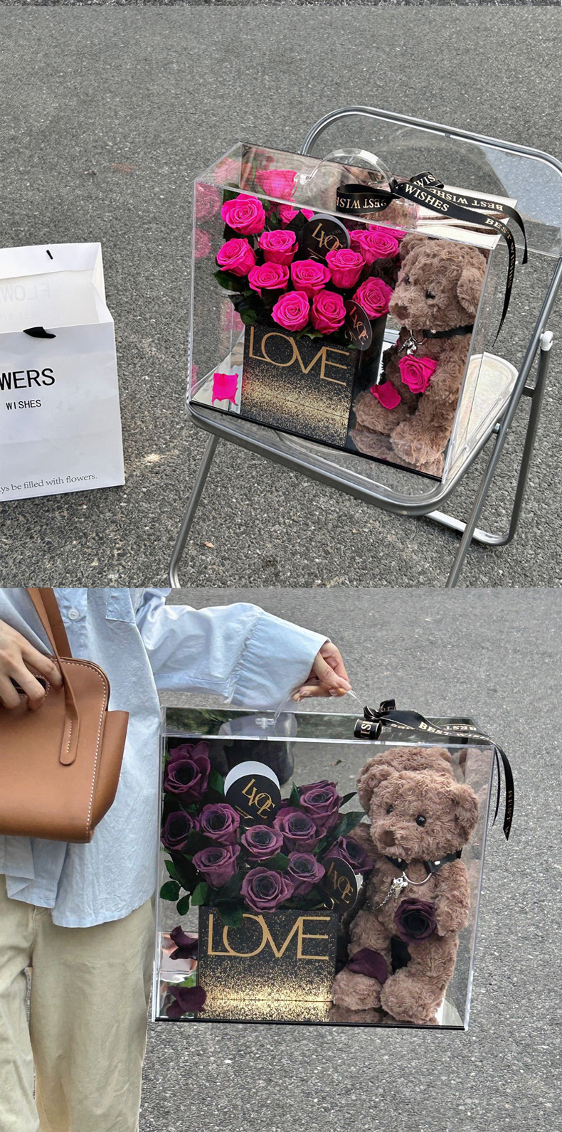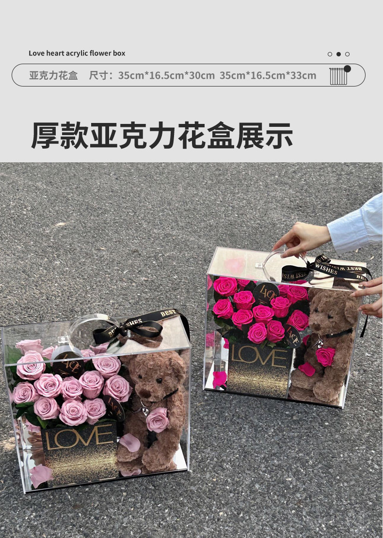 Acrylic flower box size: 35*16.5*30 and 35*16.5*33