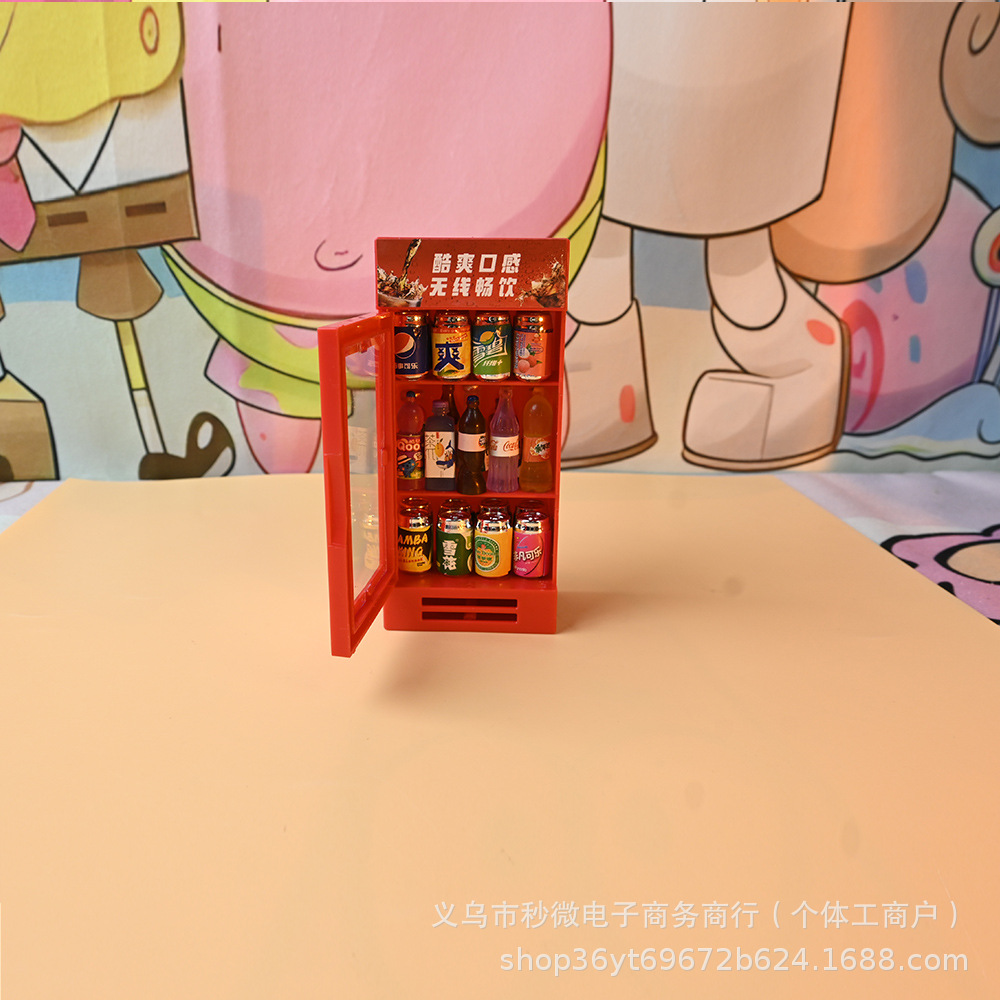 red refrigerator without candy toy