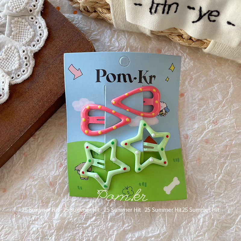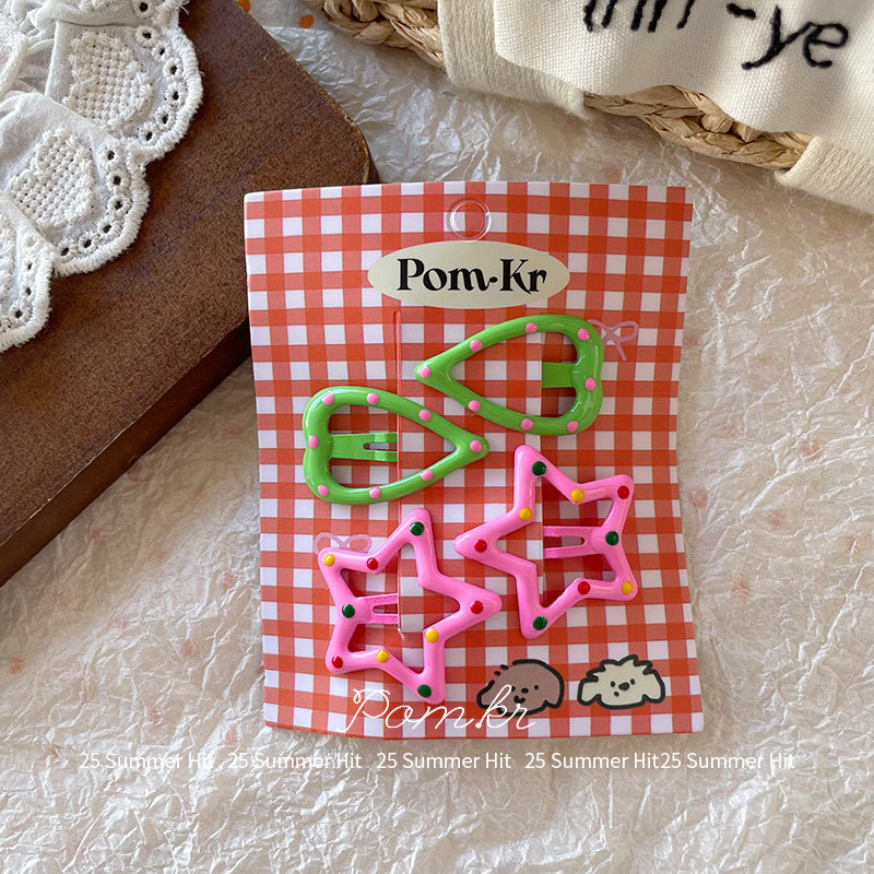 [2] green + rose pink series barrettes