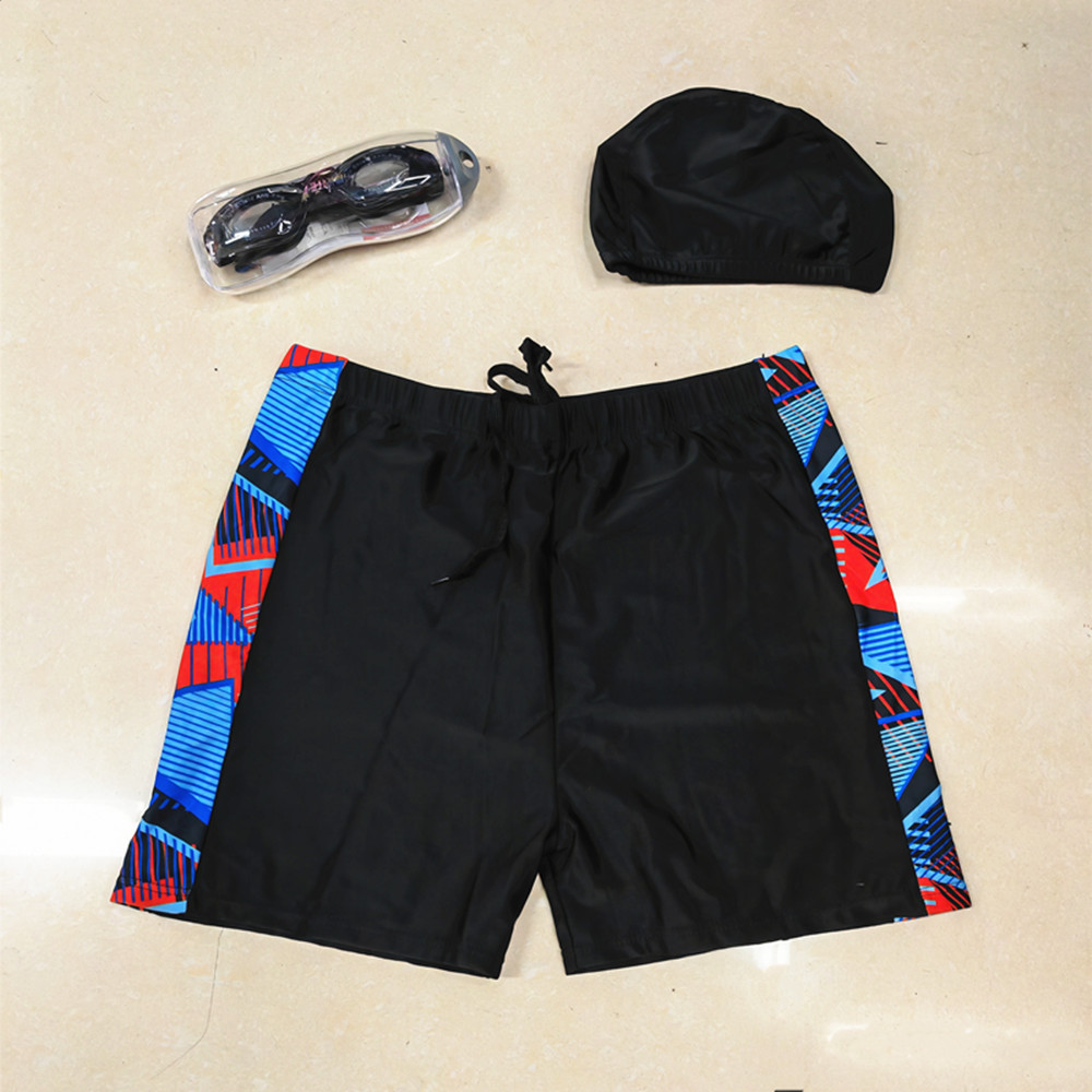 Adult Men's Tie-Dye Nylon Swim Trunks with High-Definition Swim Goggles and High-Elasticity Swim Cap, Three-Piece Set,