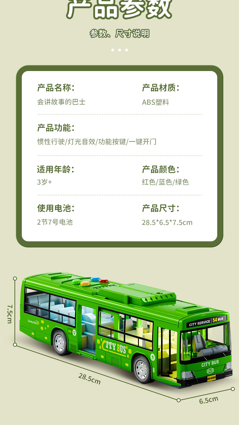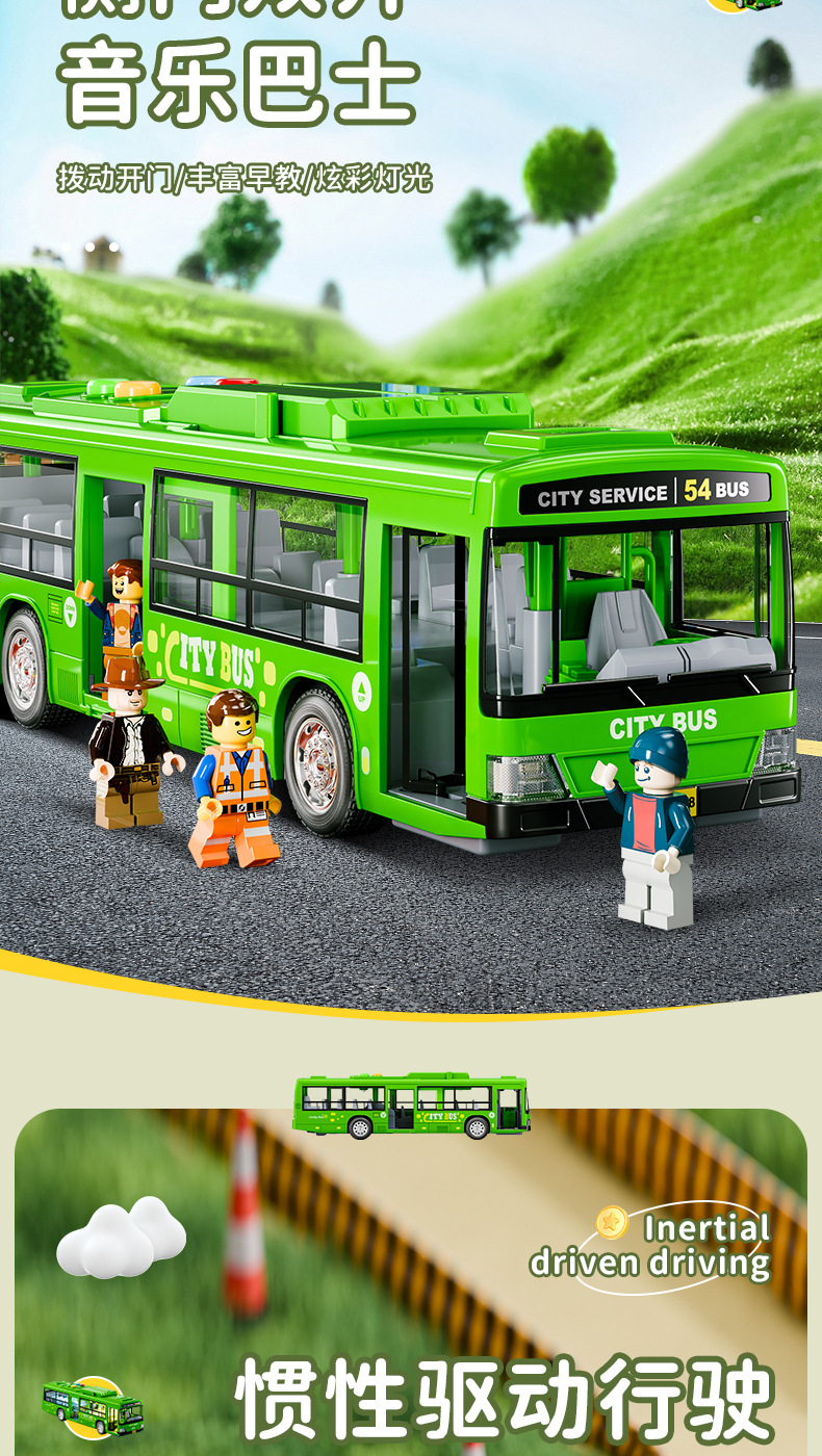 (with battery) green bus [sound and light/inertia/open door]]