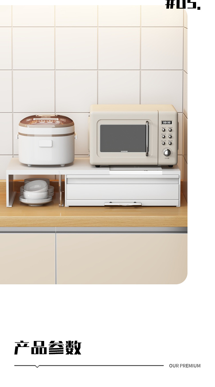 microwave oven bottom pull rack-double layer (white drawer + pull plate)