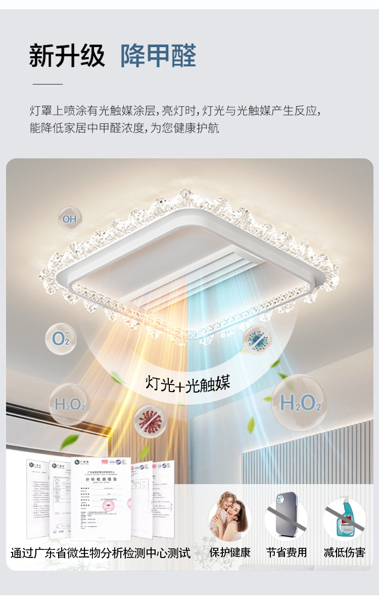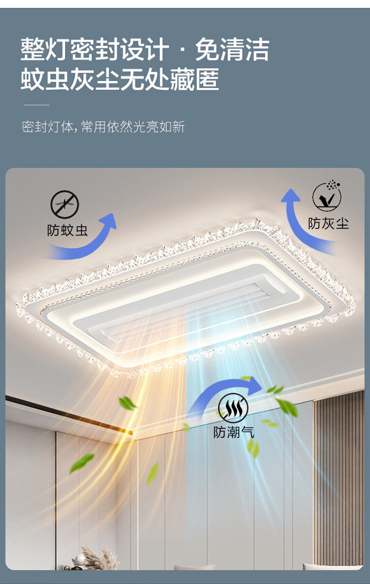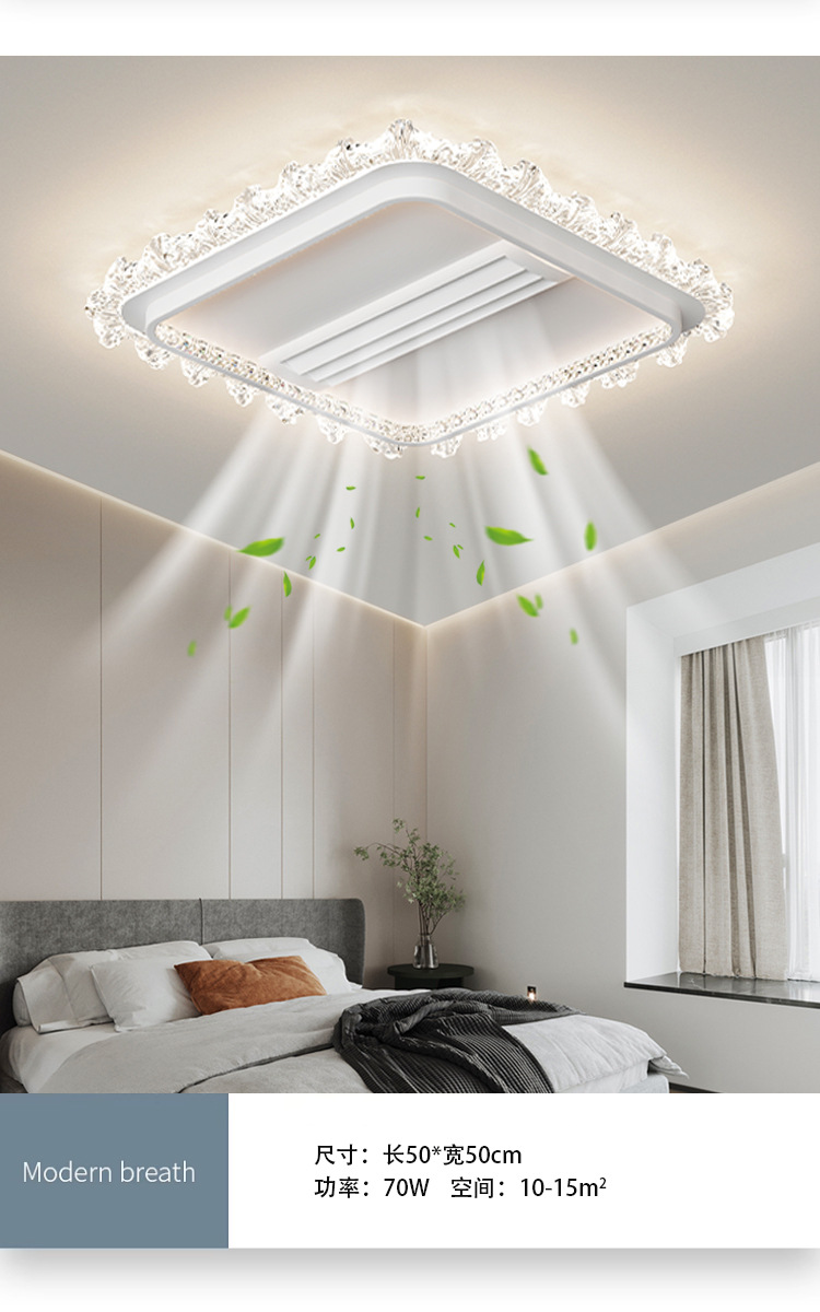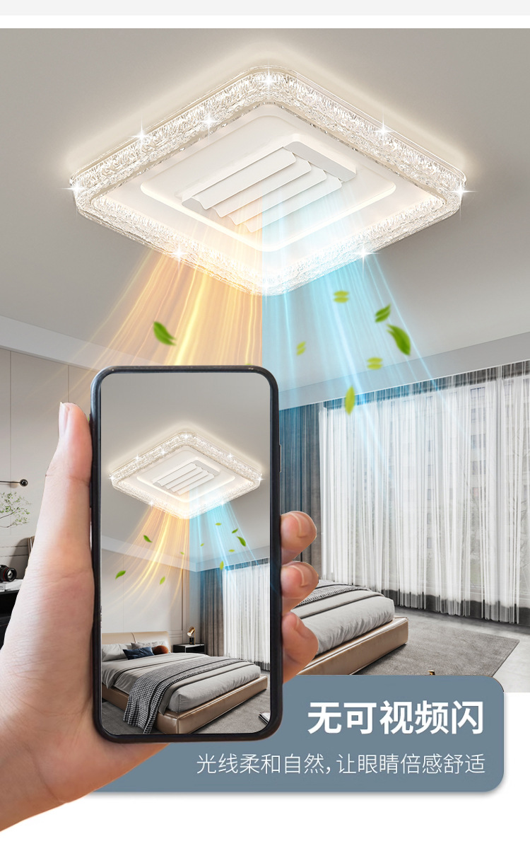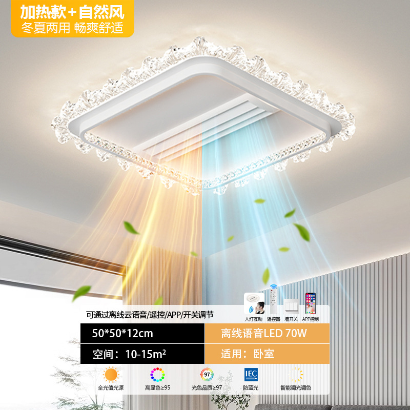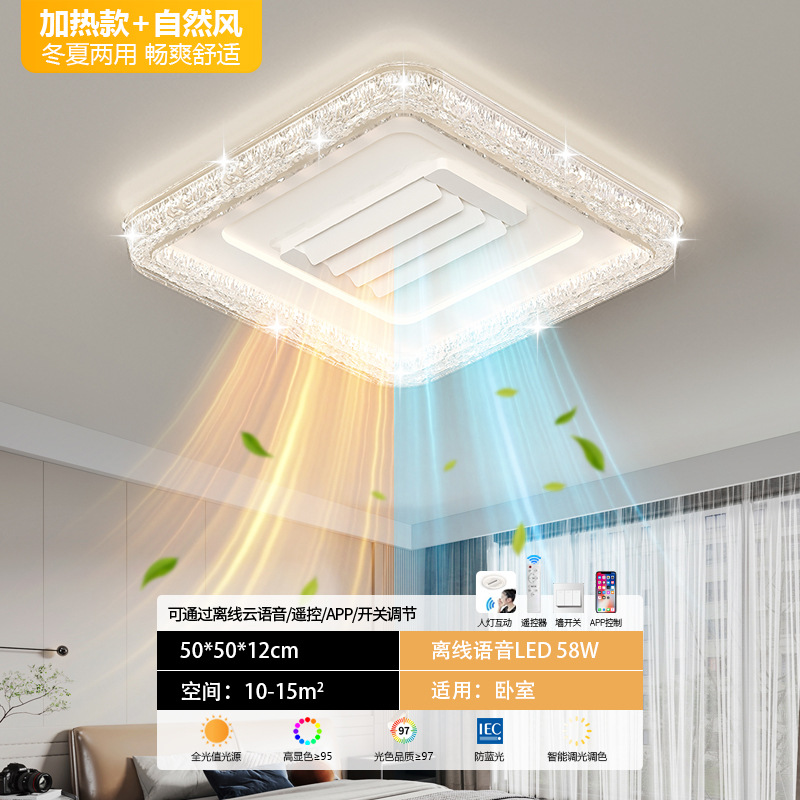 bedroom cold and warm leaf-free fan lamp [eye protection 97 finger display] 50cm square offline voice heating
