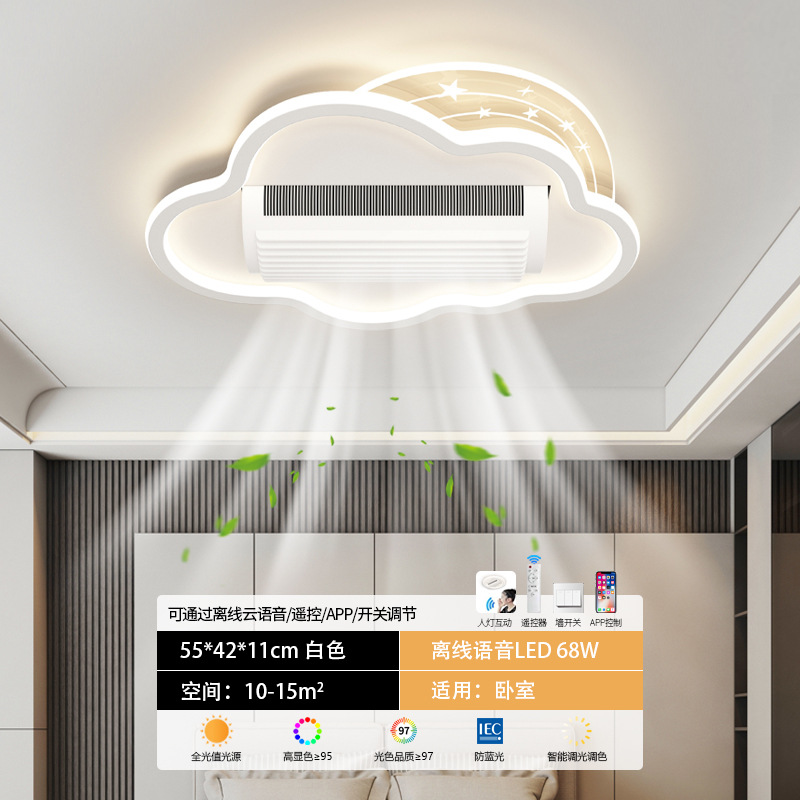 bedroom cloud leaf-free fan lamp [eye protection 97 finger display] 50cm offline voice natural style