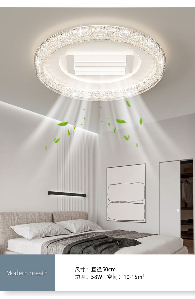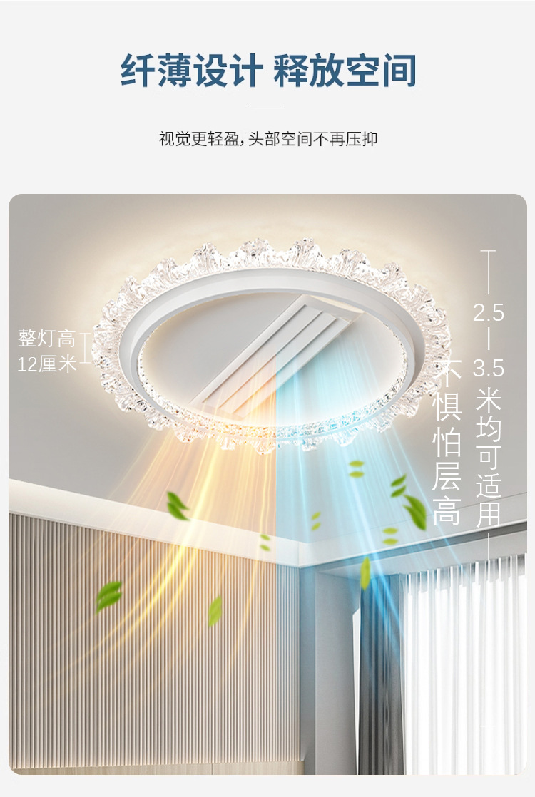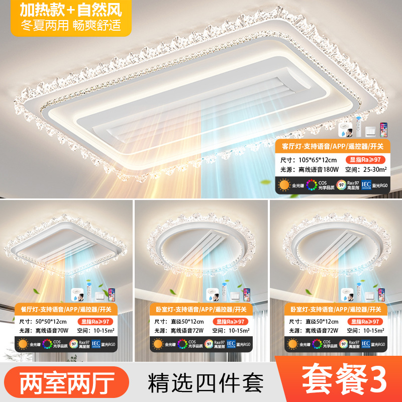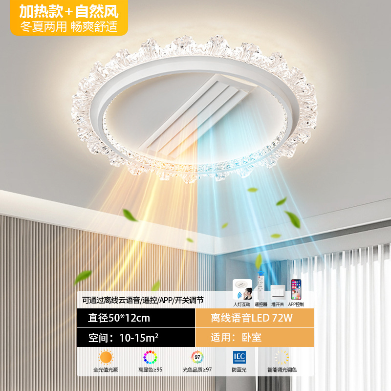 bedroom cold and warm leaf-free fan lamp [eye protection 97 finger display] 50cm round offline voice heating