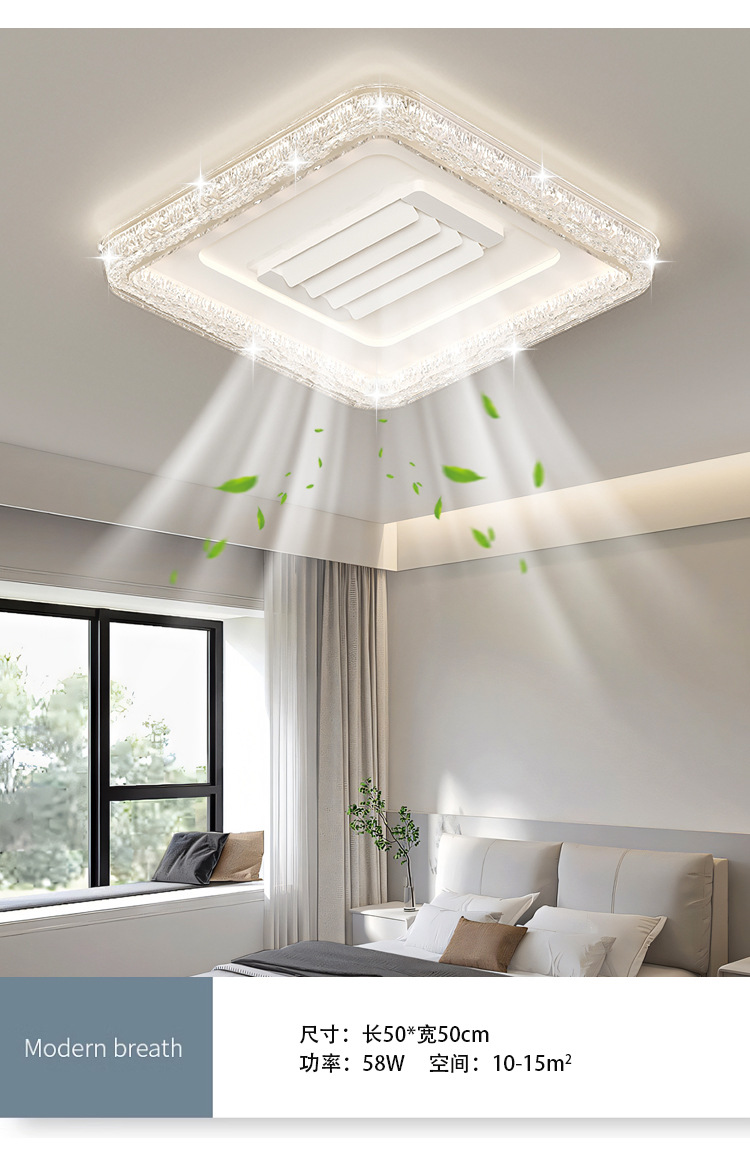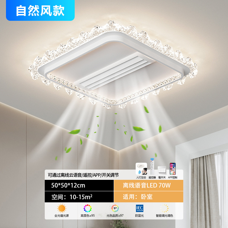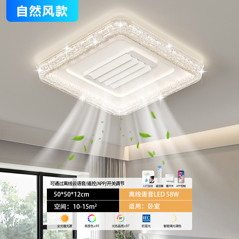 bedroom leaf-free fan lamp [eye protection 97 finger display] 50cm square offline voice natural style
