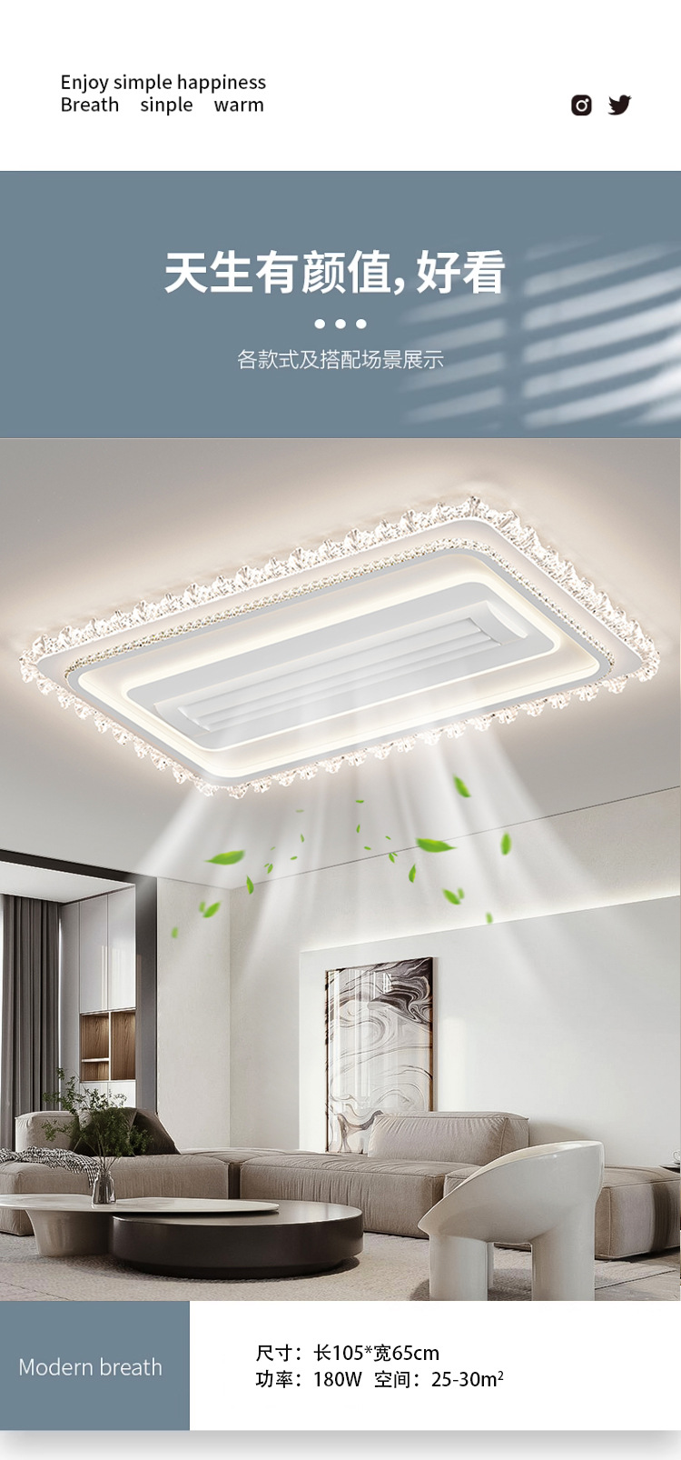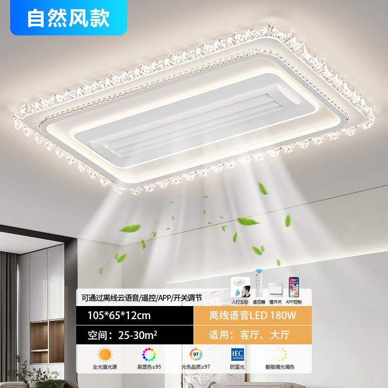 living room leaf-free fan lamp [eye protection 97 finger display] 105 * 65cm offline voice natural style