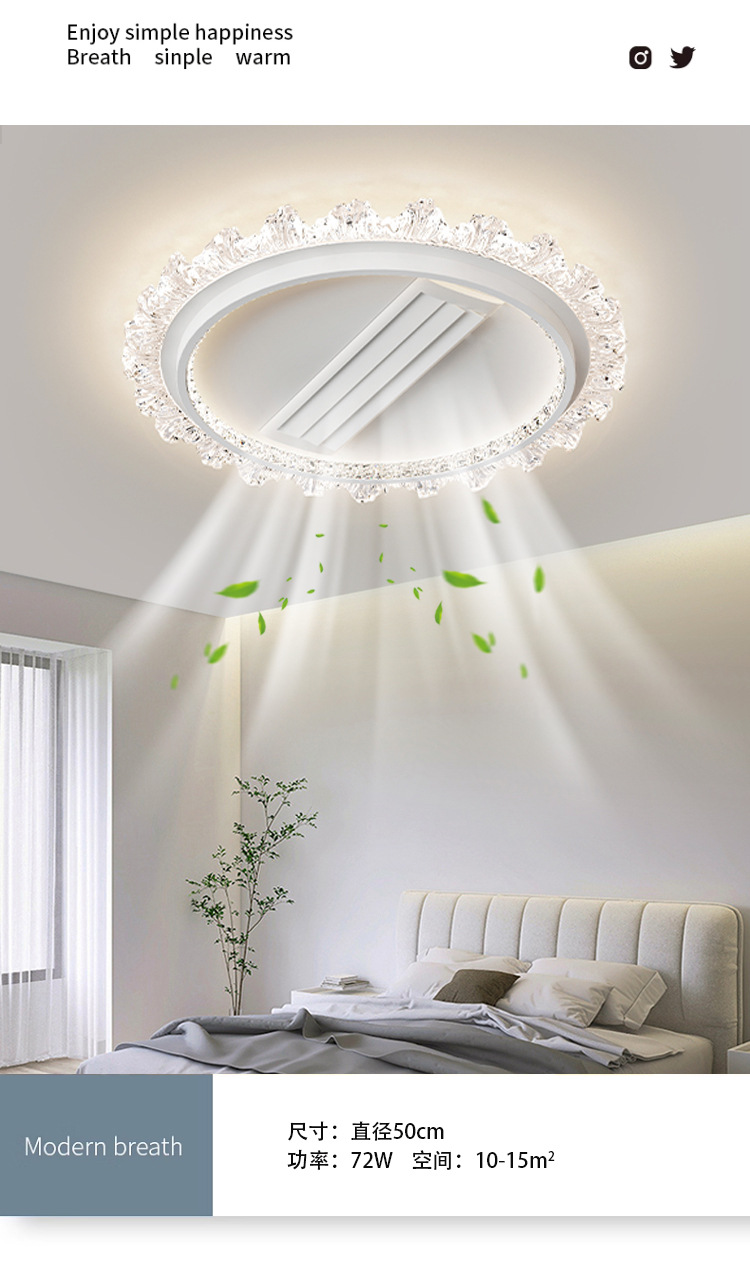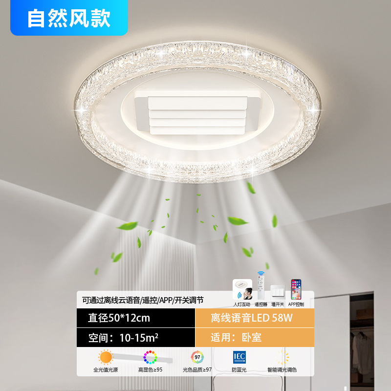 bedroom leaf-free fan lamp [eye protection 97 finger display] 50cm round offline voice natural style