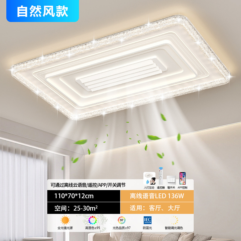 living room leaf-free fan lamp [eye protection 97 finger display] 110 * 70cm offline voice natural style