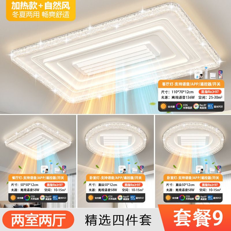 living room cold and warm leaf-free fan lamp [eye protection 97 finger display] 110 * 70cm offline voice heating