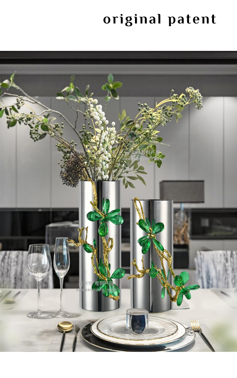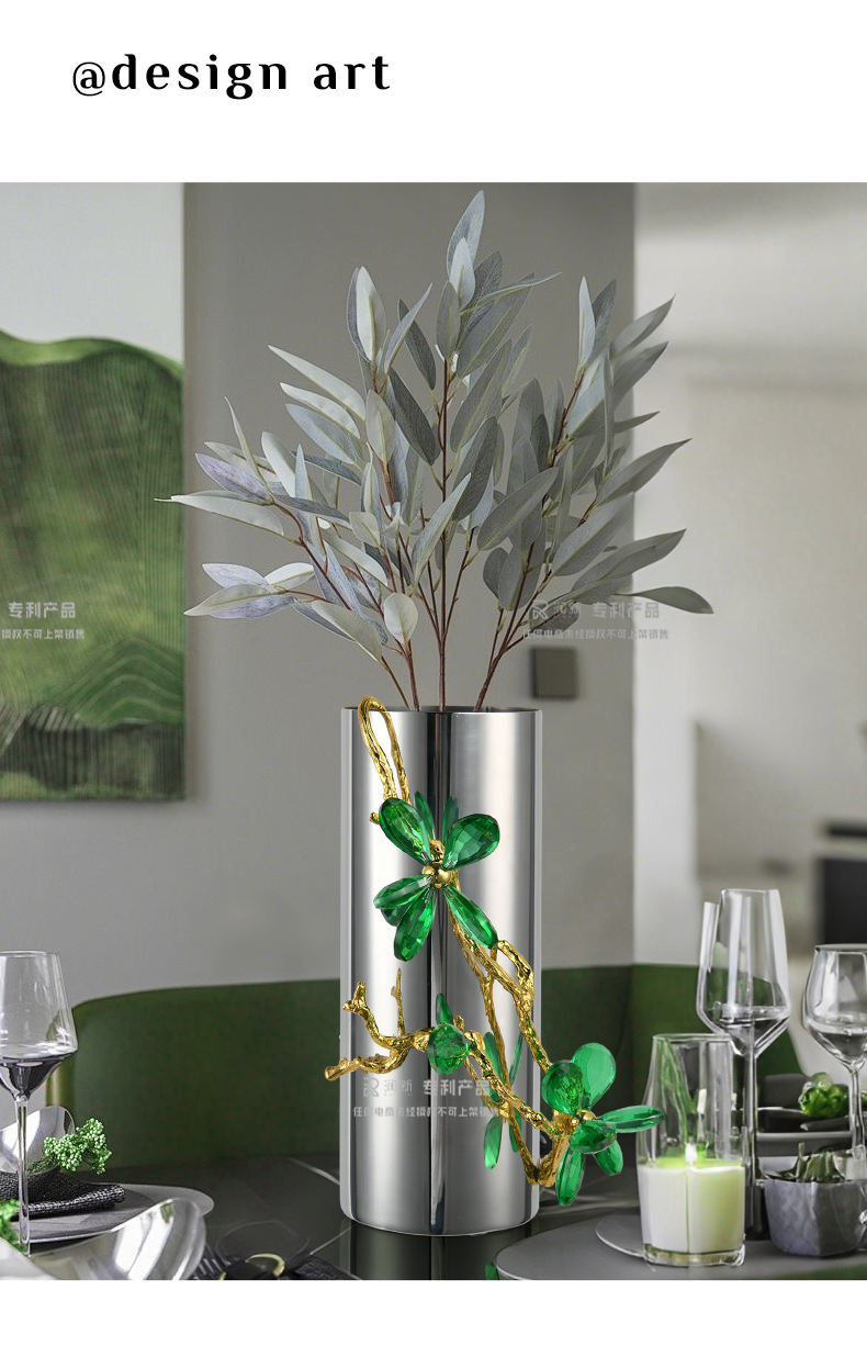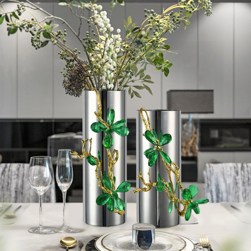 light luxury crystal stainless steel vase flower arrangement living room tv cabinet hallway table-top decoration dining table side cabinet decorations