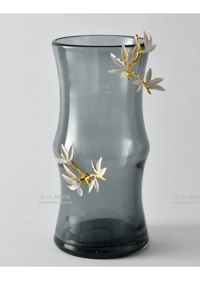 modern light luxury smoky gray glass flowerpot and flower vase living room dried flowers model sales office desktop soft decorative ornaments