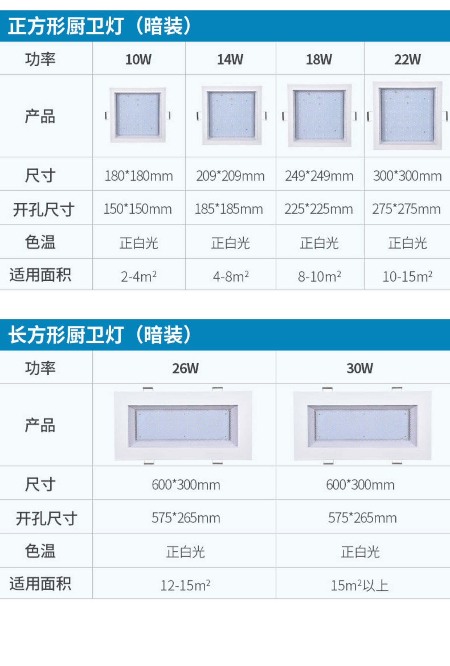 bright square 14w white light 22 * 22cm bright version