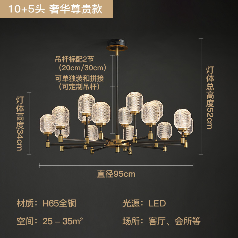 [brass material] 15-head chandelier with three-color light source♢♢
