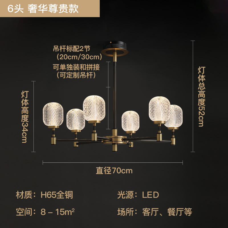 [brass material] 6-head chandelier with three-color light source♢♢