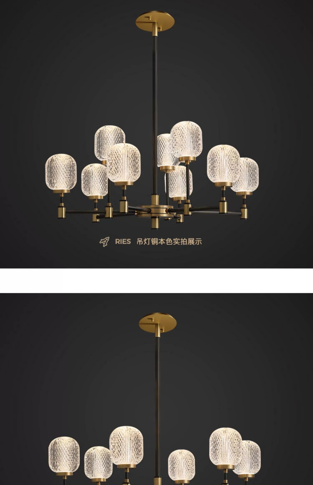[brass material] 12-head chandelier with three-color light source♢♢