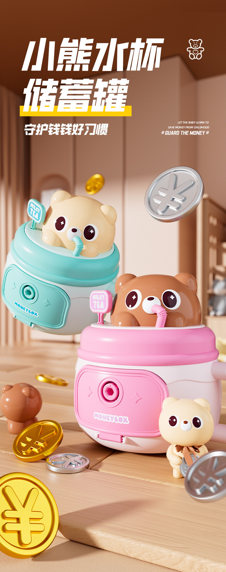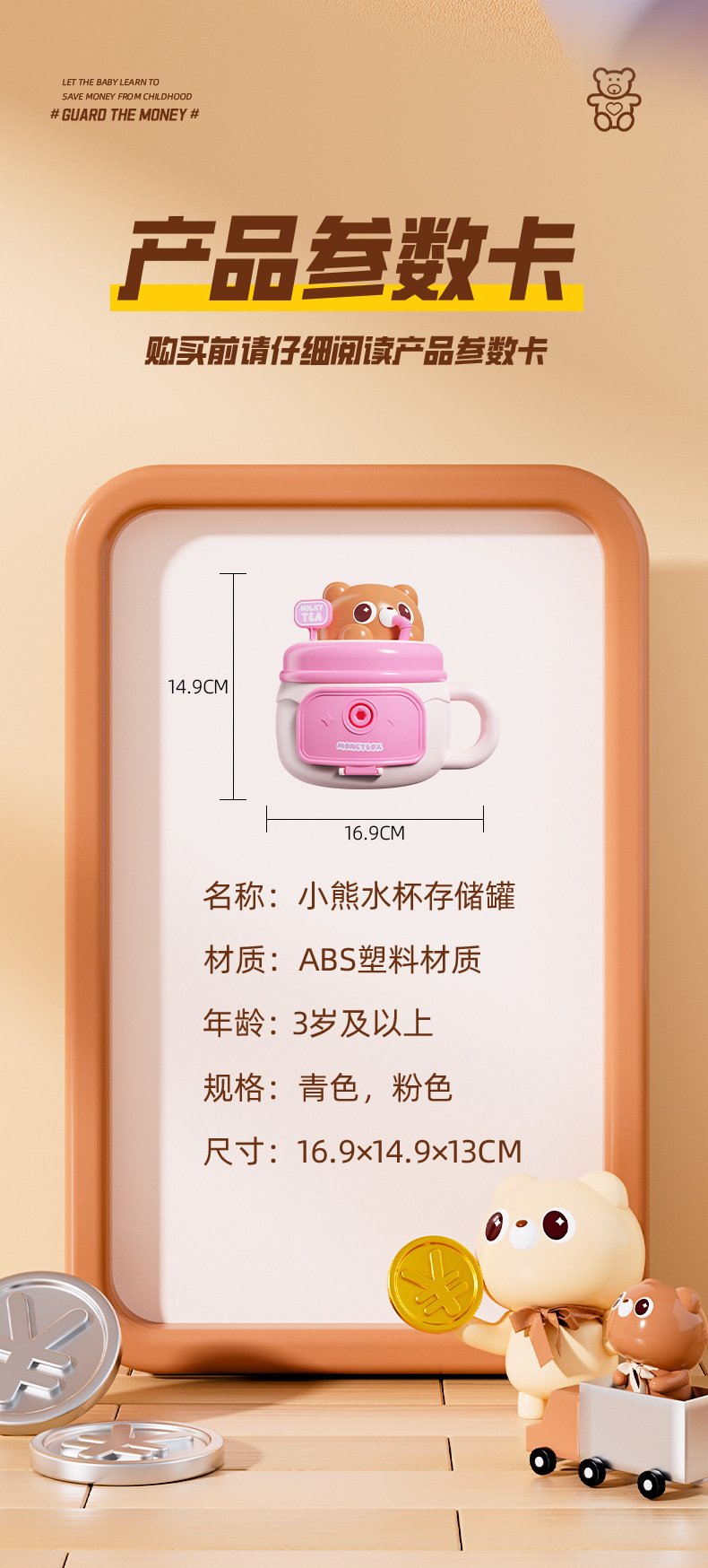 bear water cup savings bank-pink (e-commerce box)