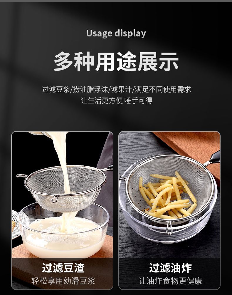 304 colander stainless steel mesh colander household filter screen soybean milk ultra-fine juice filter spoon dreg screening oil filter
