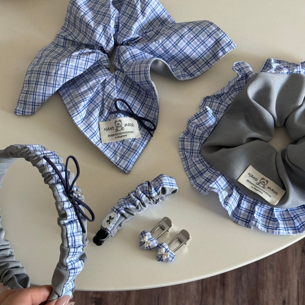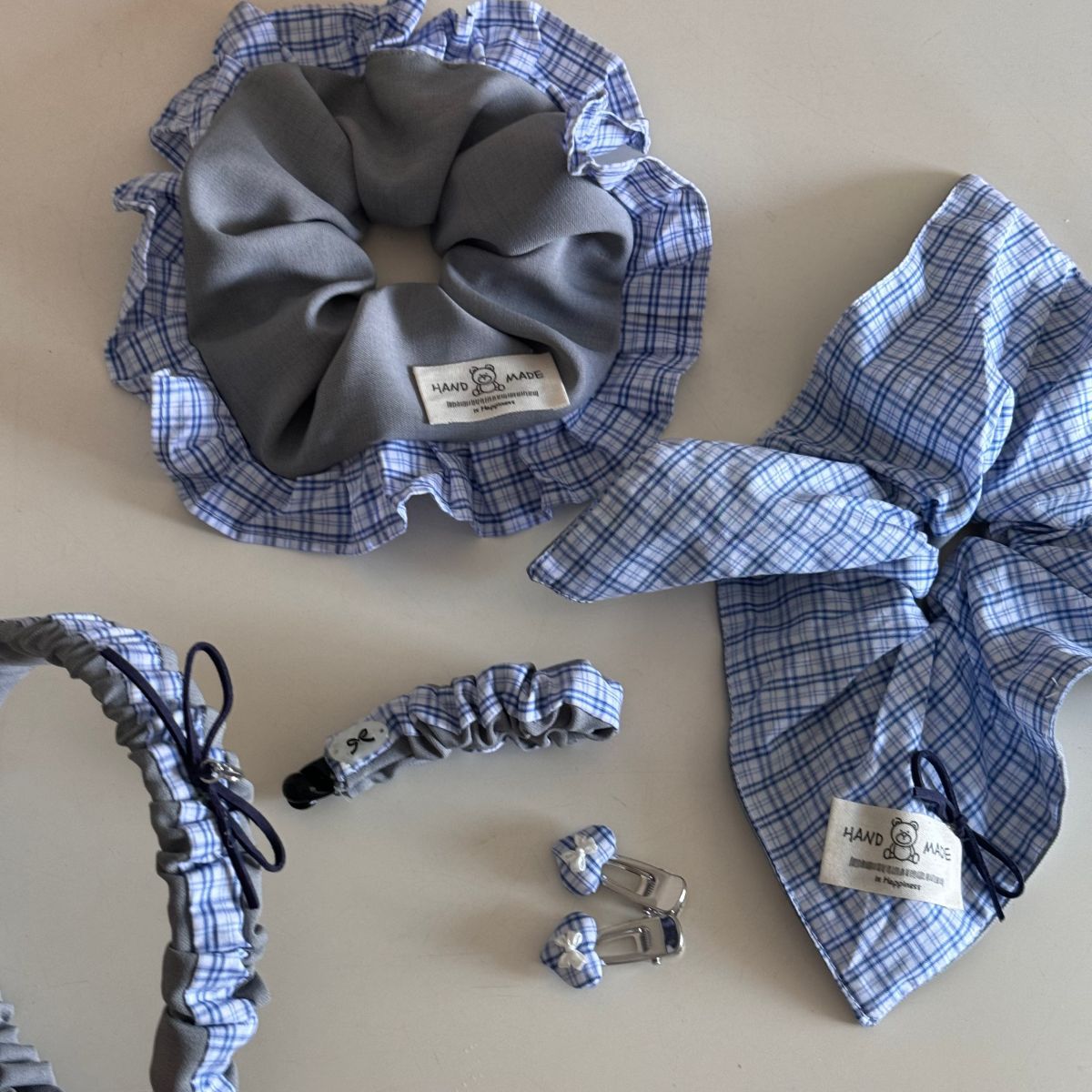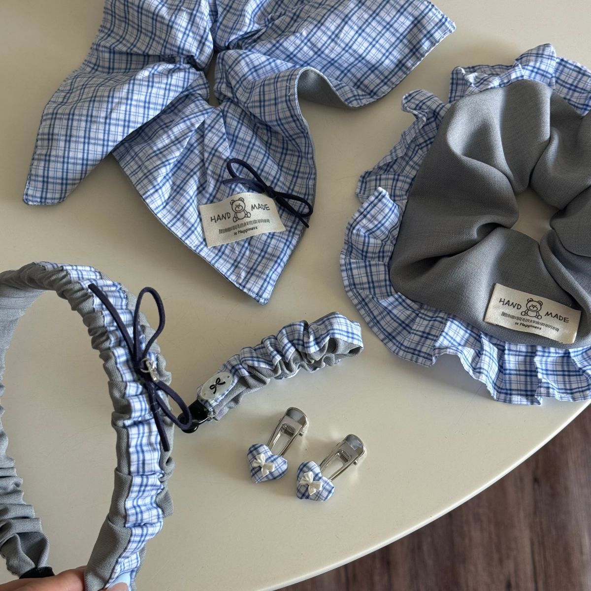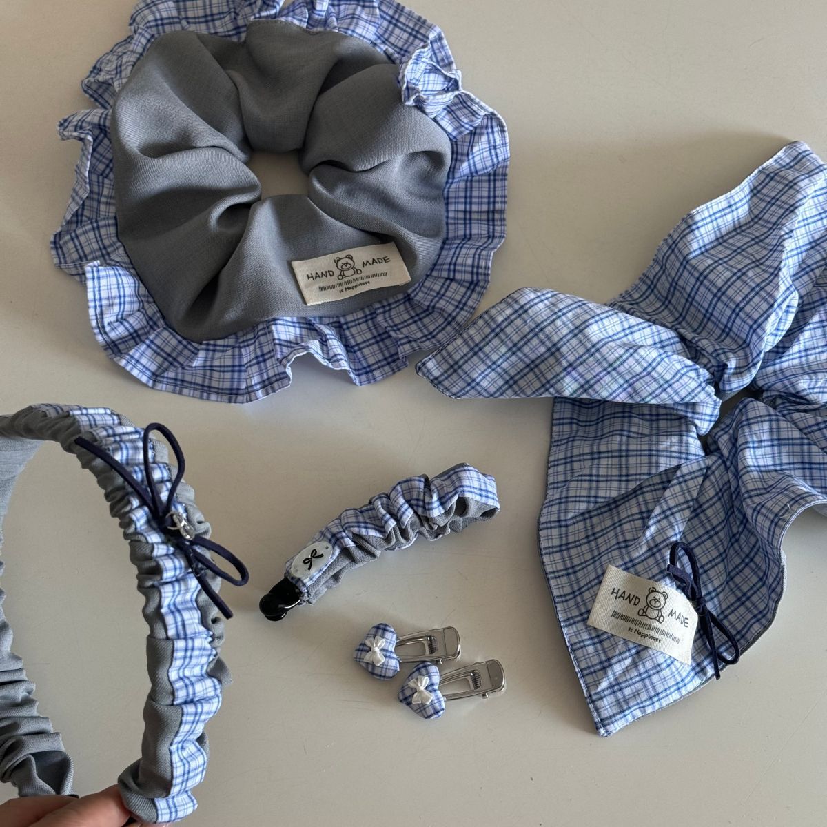 gray blue plaid-a pair of hairclips