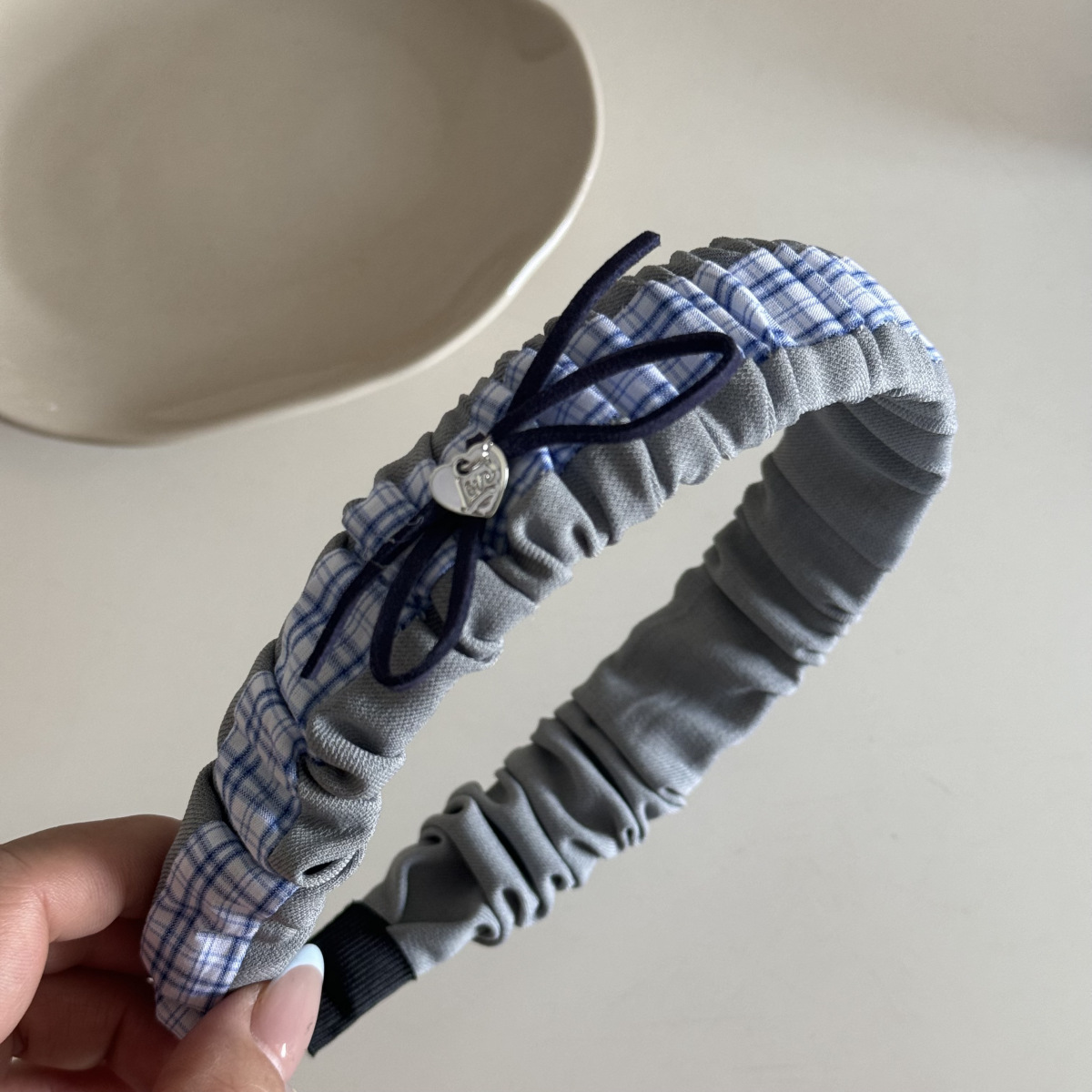gray blue plaid-headband
