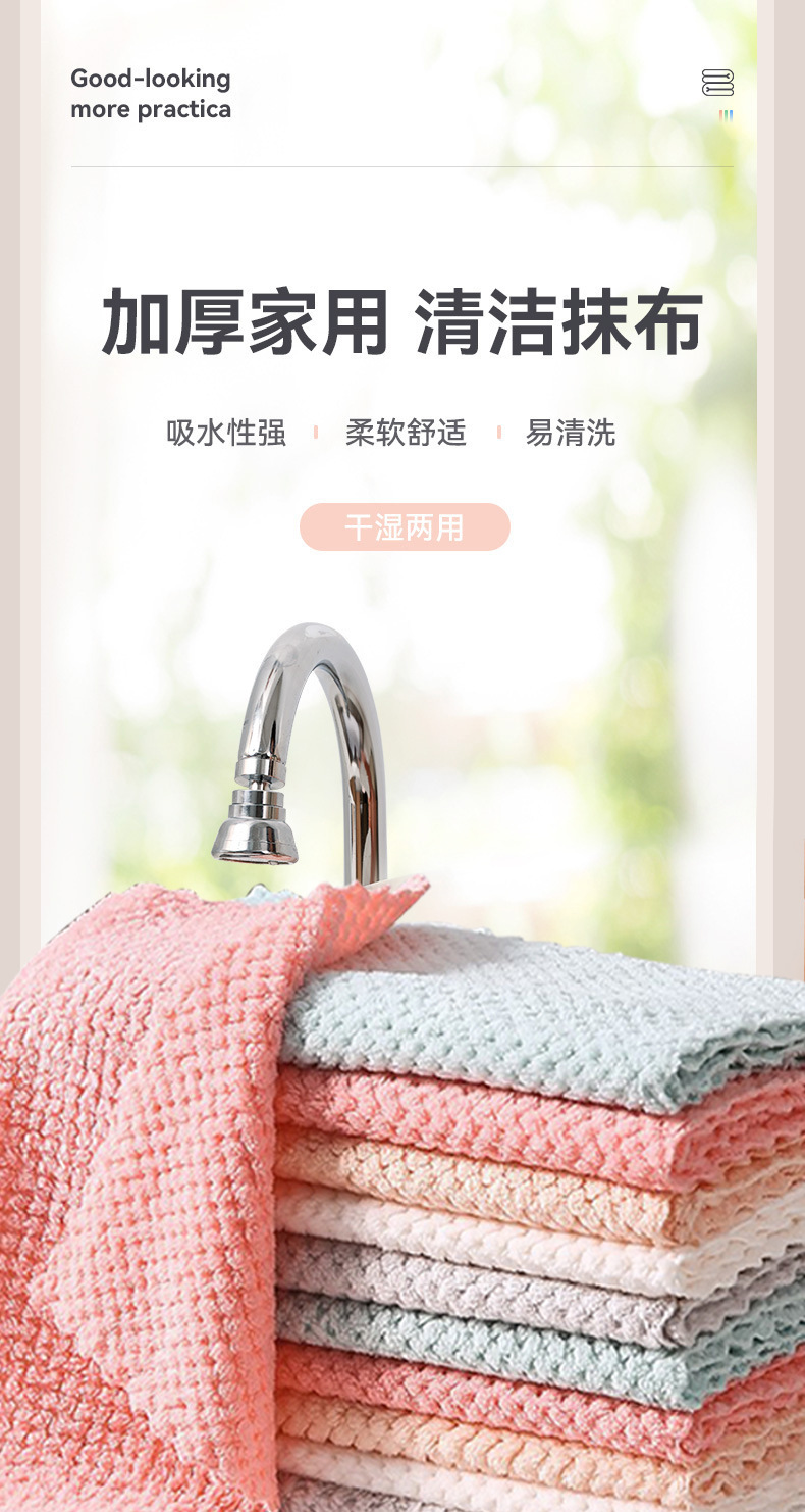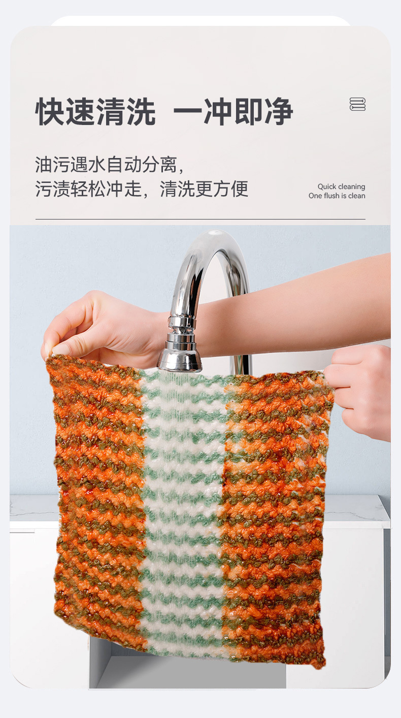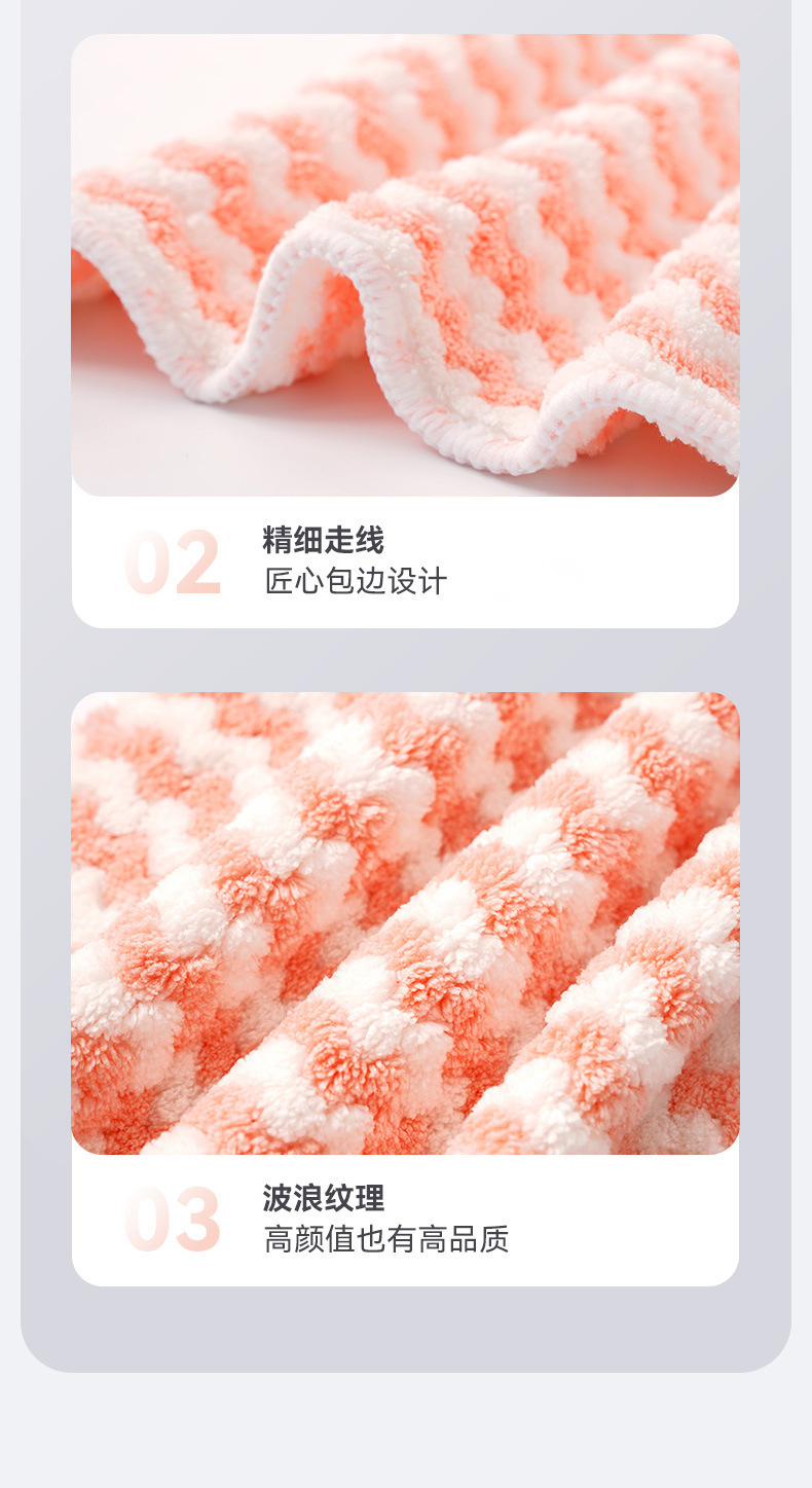 [extra thick coral velvet rag] 5 pack dish towel striped cationic dishcloth kitchen plus-sized scouring pad