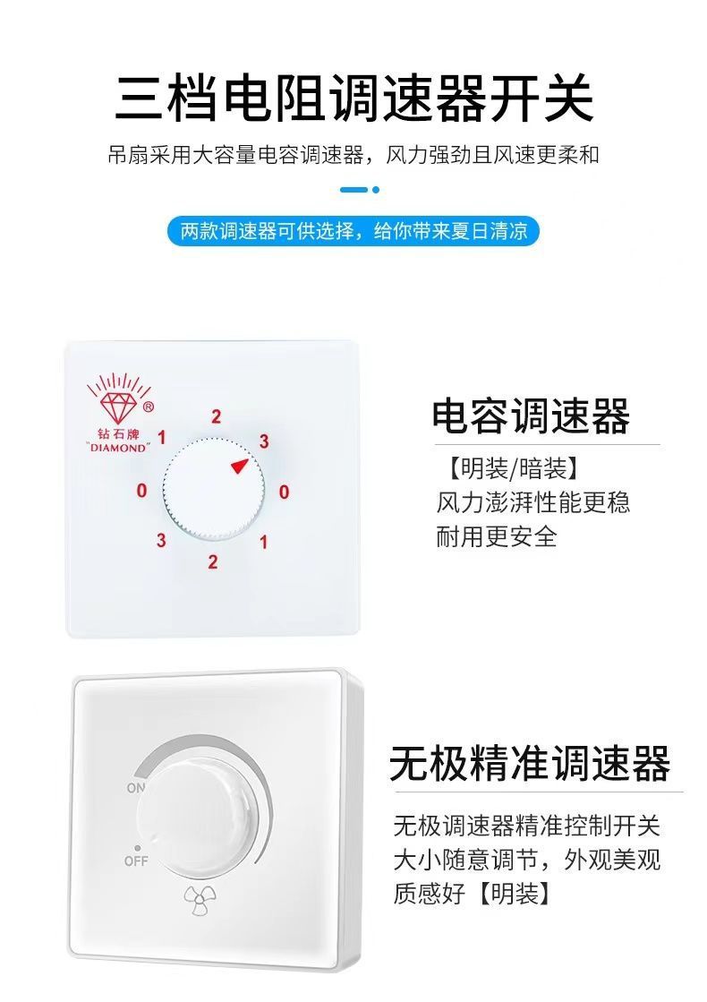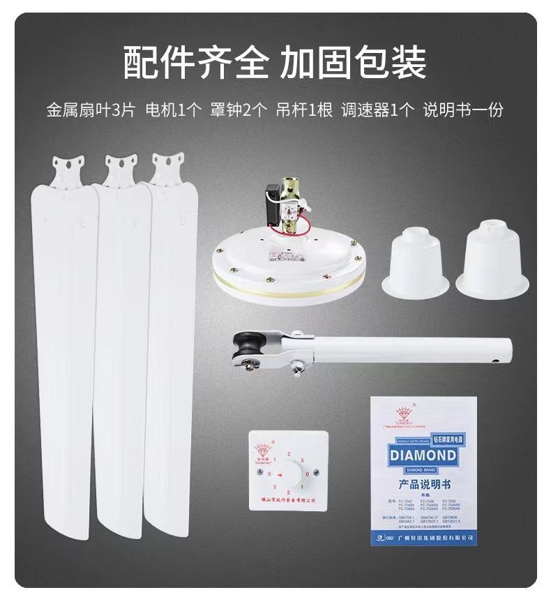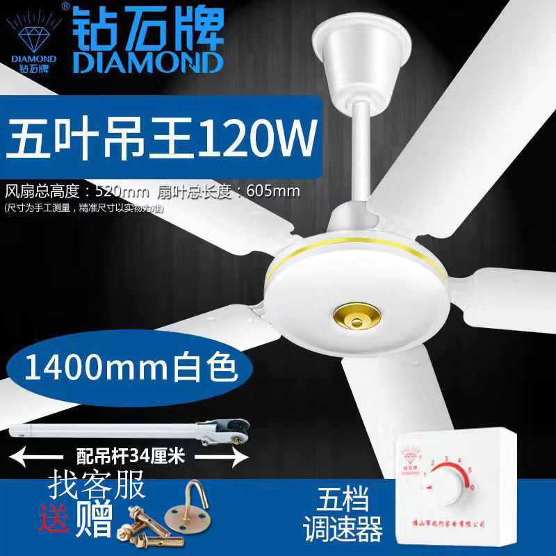 large three-leaf ceiling fan king 56-inch gear speed control white