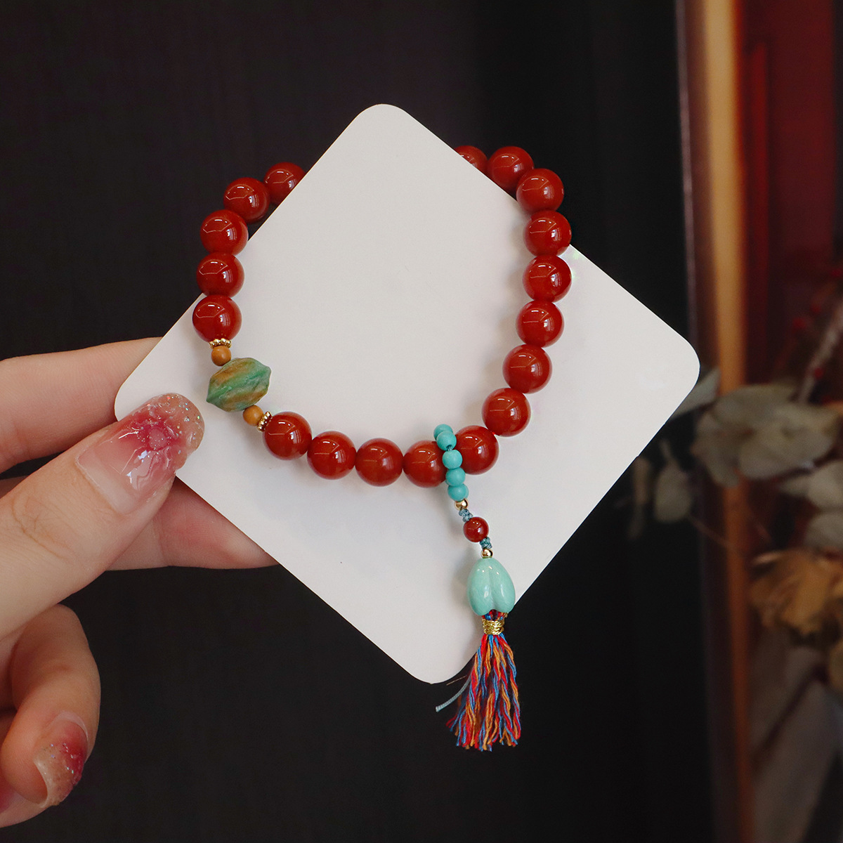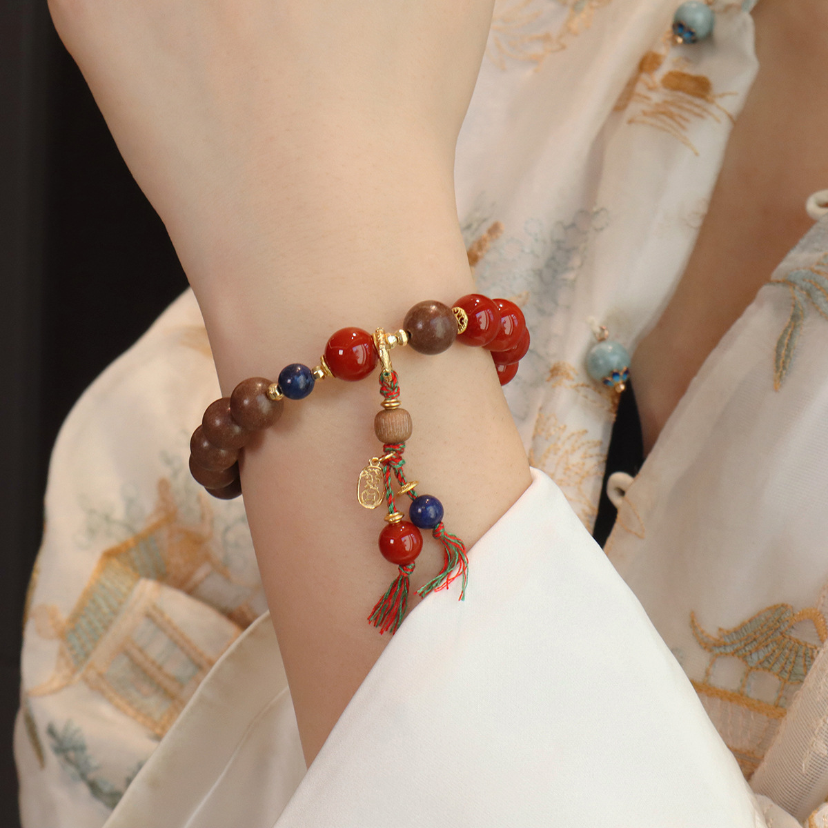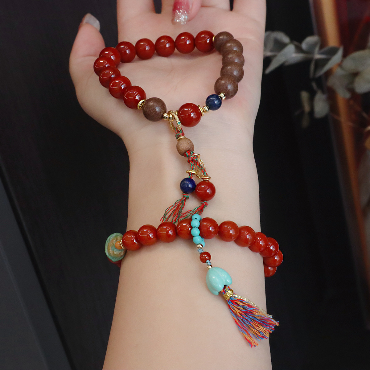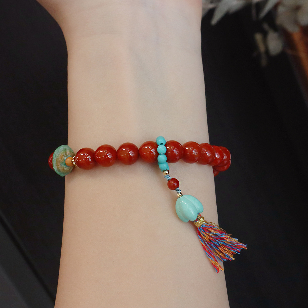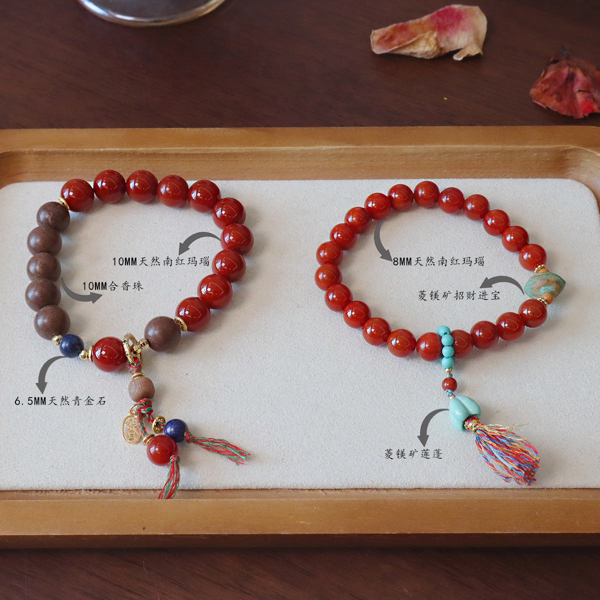 10mm natural south red agate-in-aromatic beads bracelet