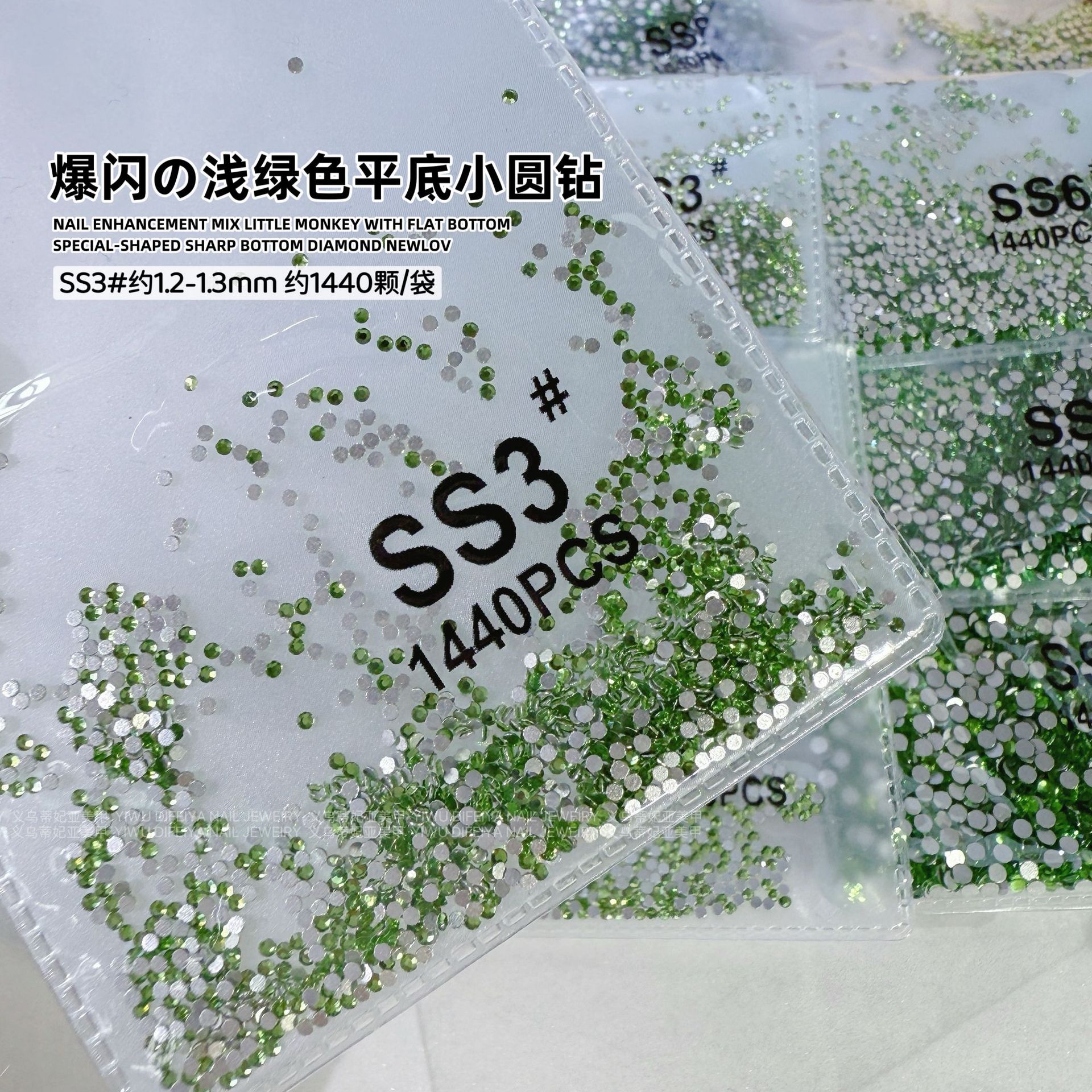silver bottom light green ss3(1.3mm) about 1440 pcs/bag
