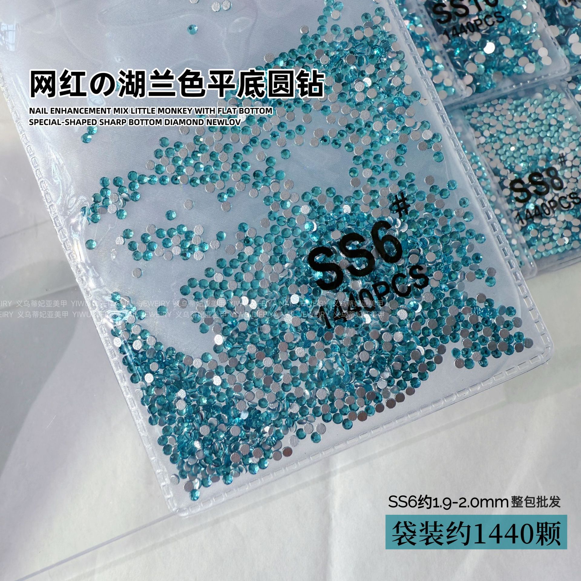 silver bottom lake blue ss6(2.0mm) about 1440 pcs/bag