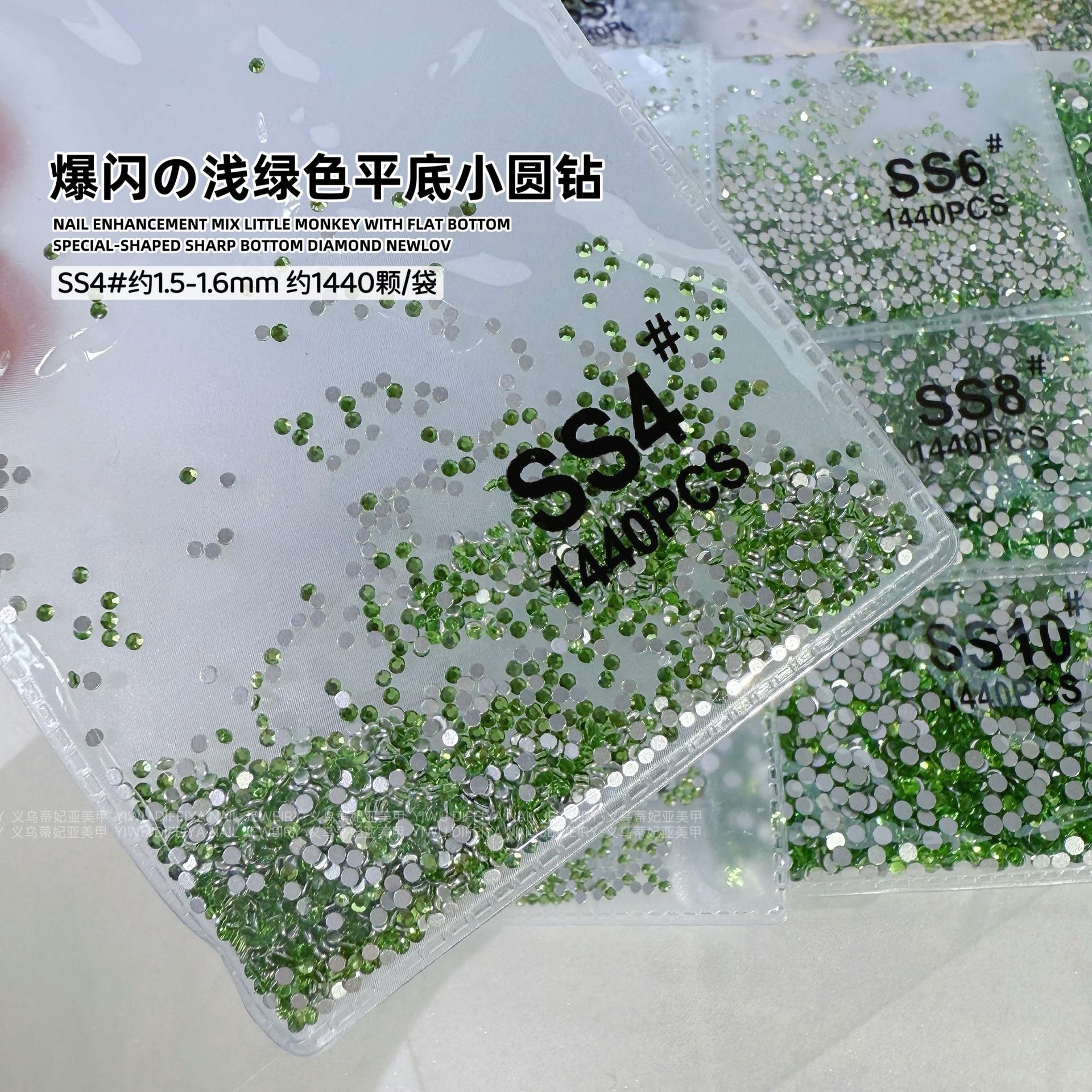 silver bottom light green ss4(1.5mm) about 1440 pcs/bag