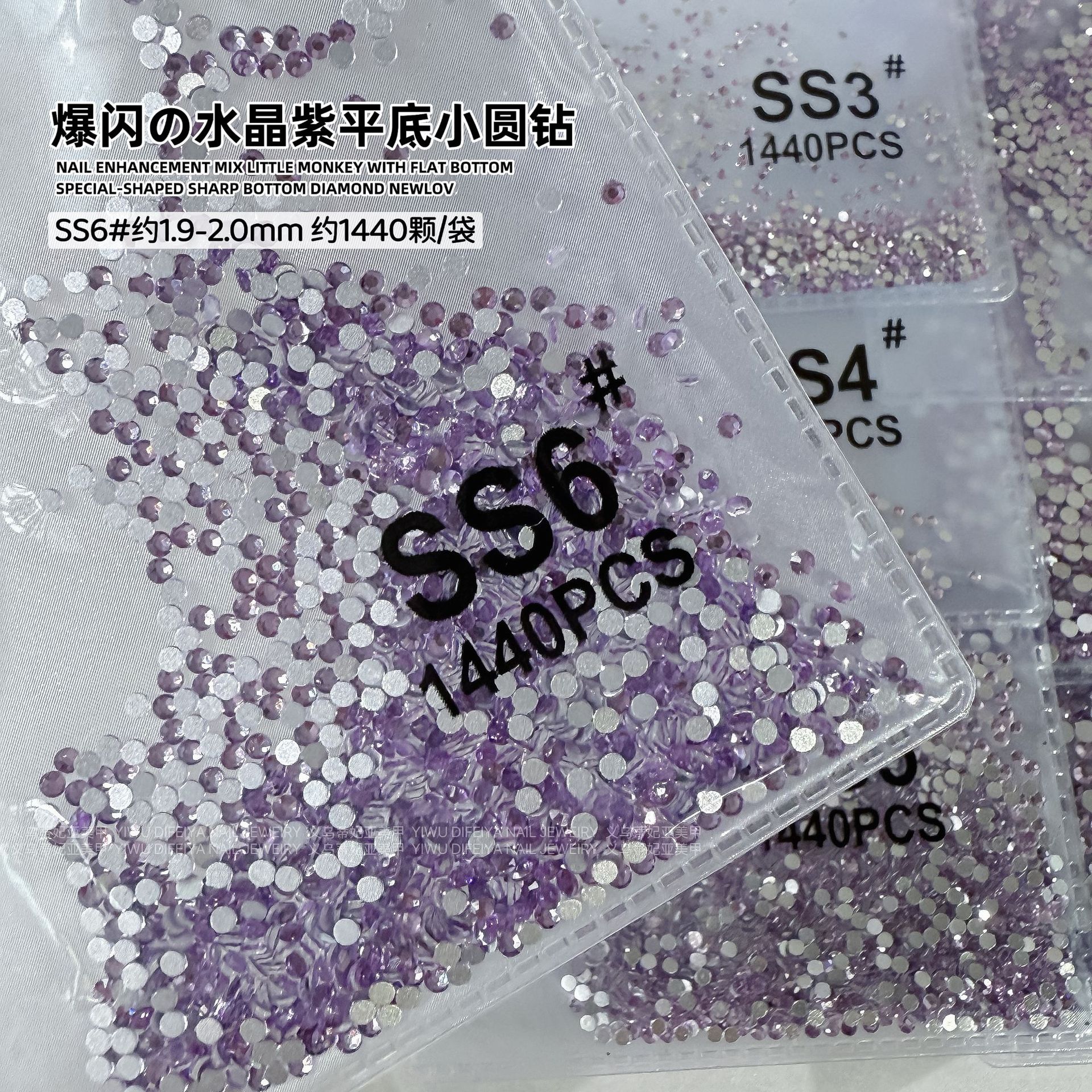silver background crystal purple ss6(2.0mm) about 1440 pcs/bag