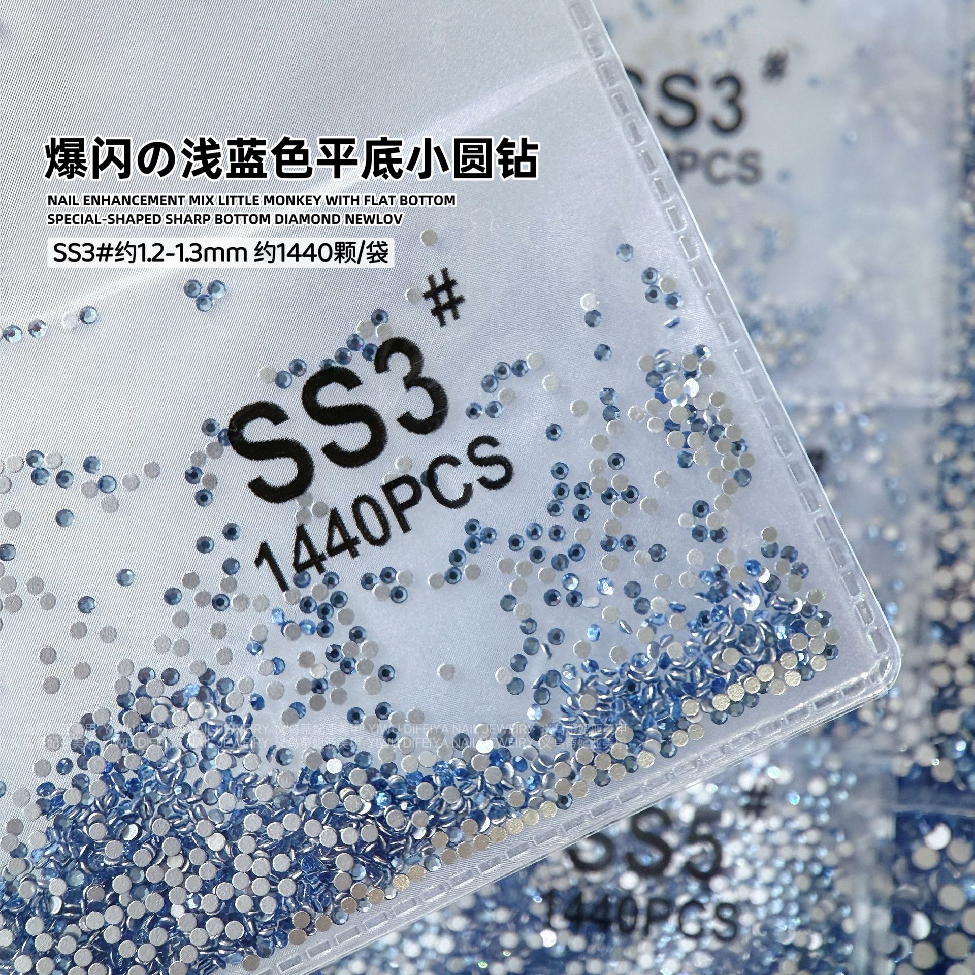 silver bottom light blue ss3(1.3mm) about 1440 pcs/bag