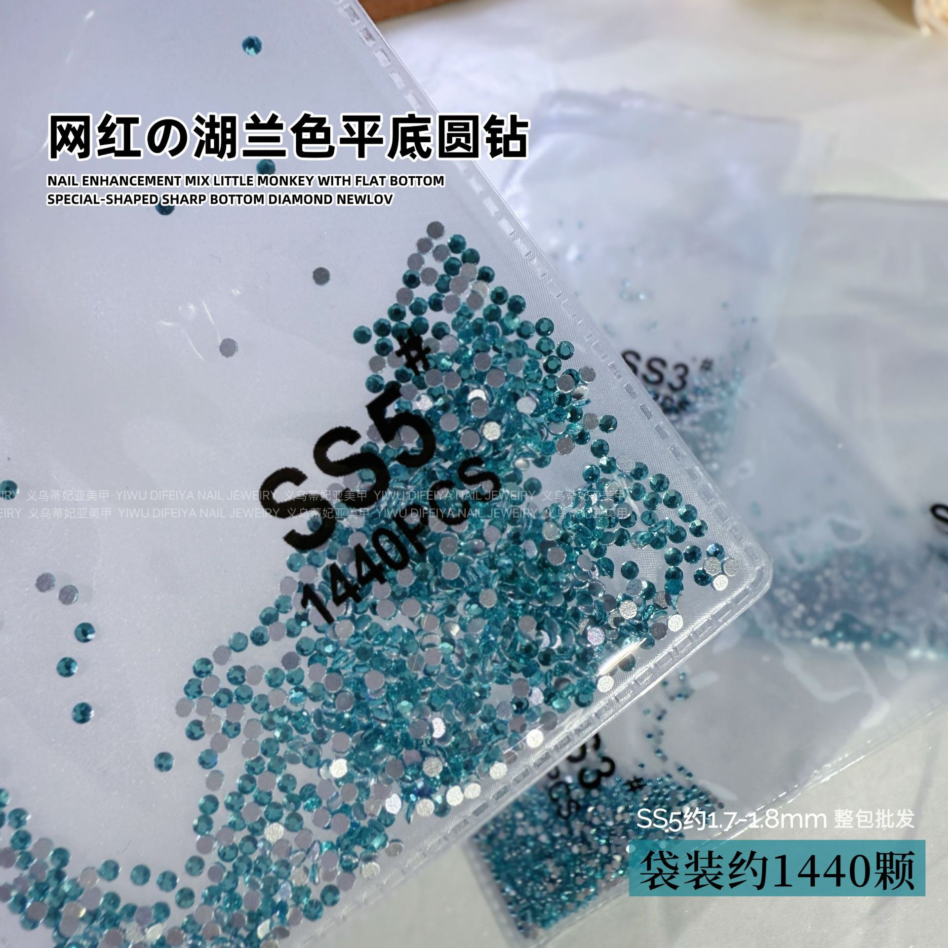 silver bottom lake blue ss5(1.7mm) about 1440 pcs/bag
