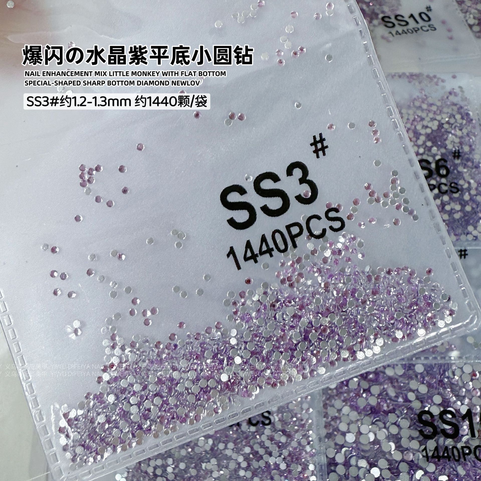 silver background crystal purple ss3 (1.3mm) about 1440 pcs/bag