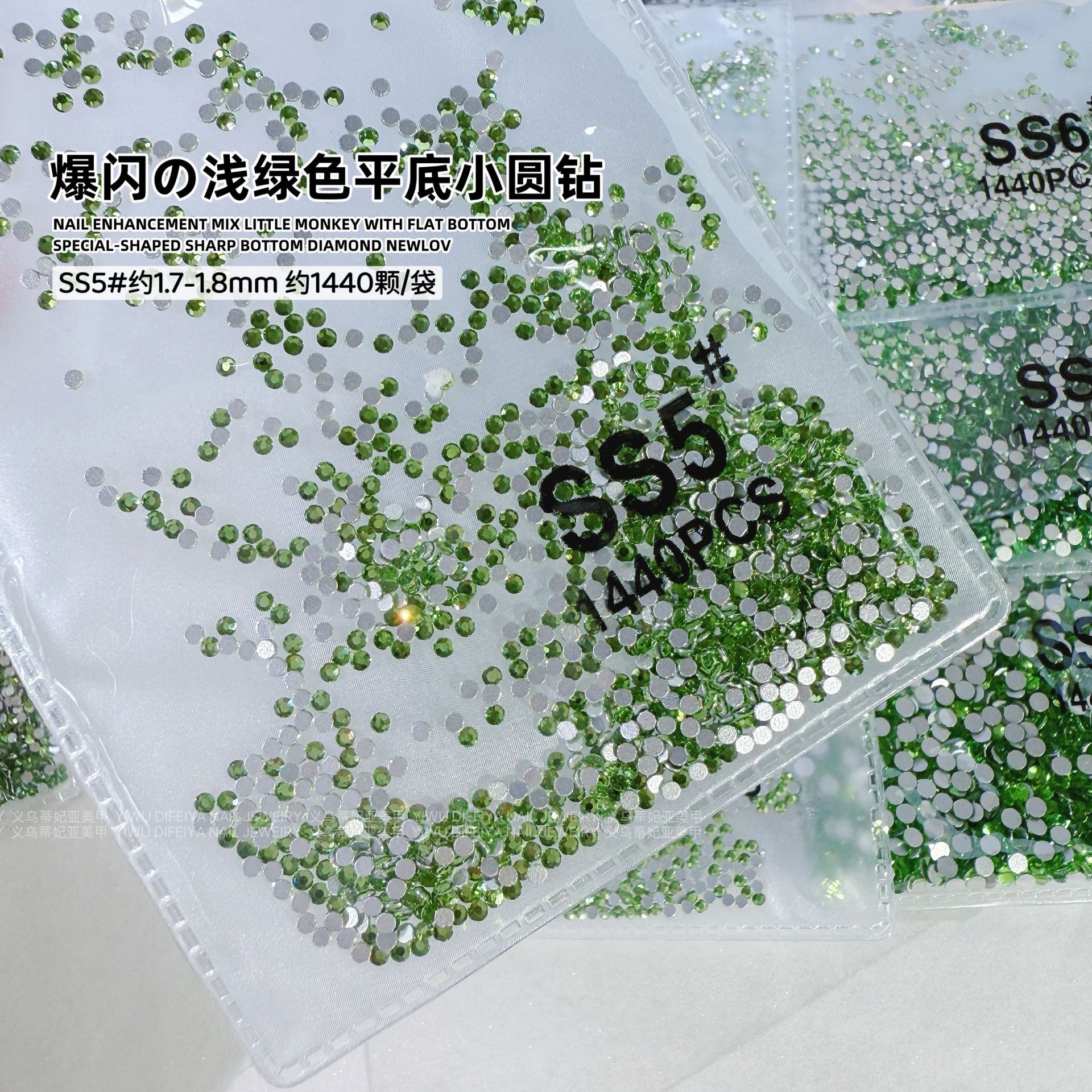 silver bottom light green ss5(1.7mm) about 1440 pcs/bag