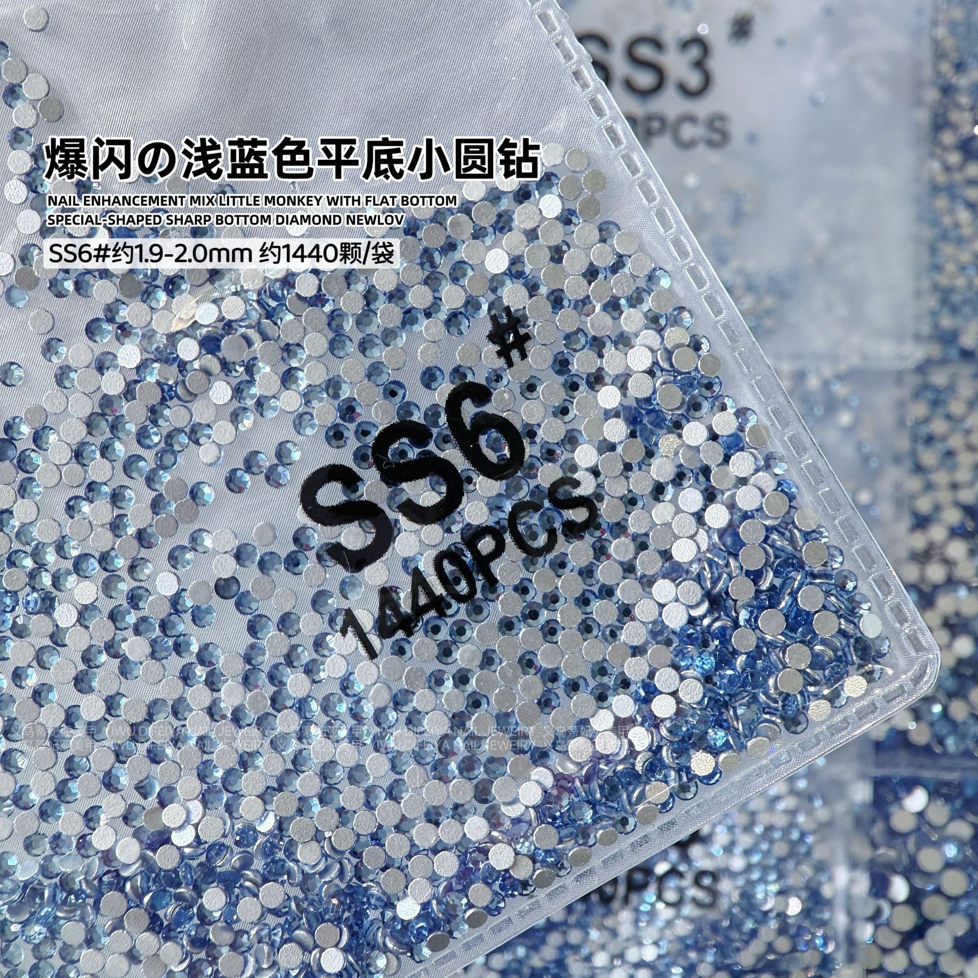 silver bottom light blue ss6(2.0) about 1440 pcs/bag