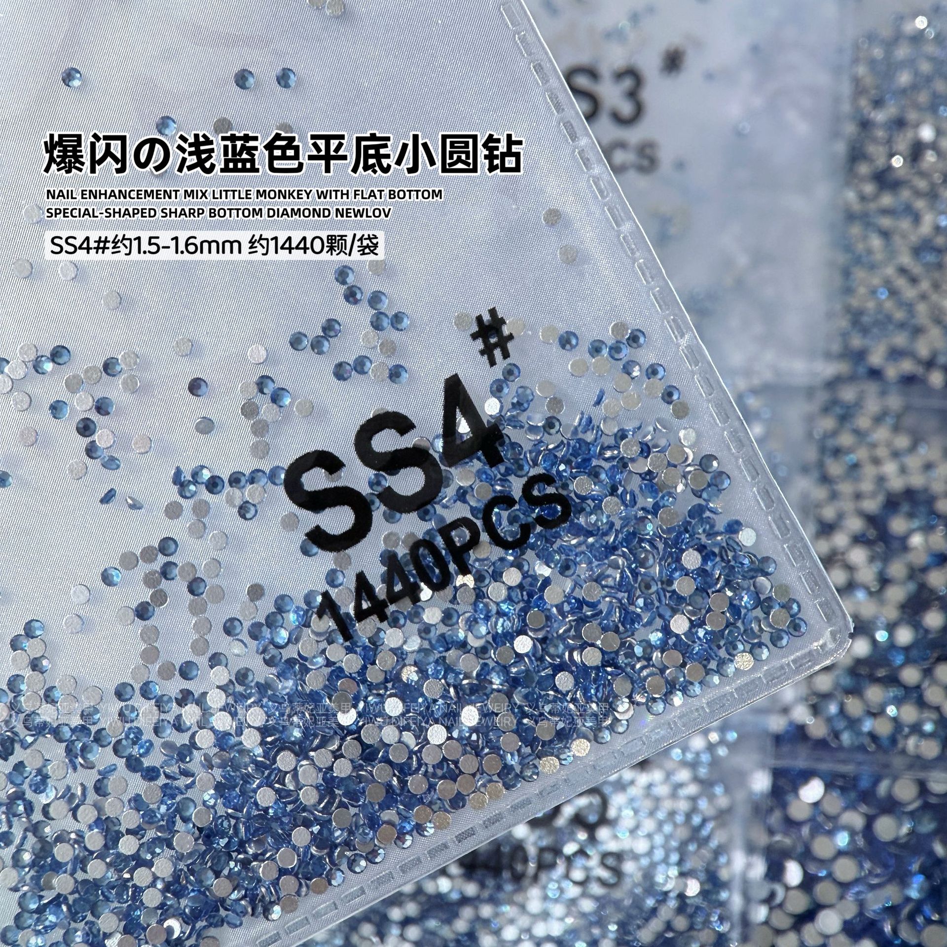 silver bottom light blue ss4(1.5mm) about 1440 pcs/bag