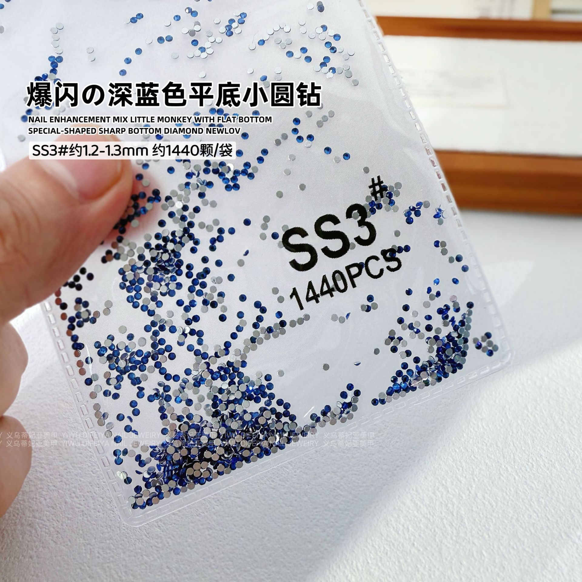 silver bottom dark blue ss3(1.3mm) about 1440 pcs/bag