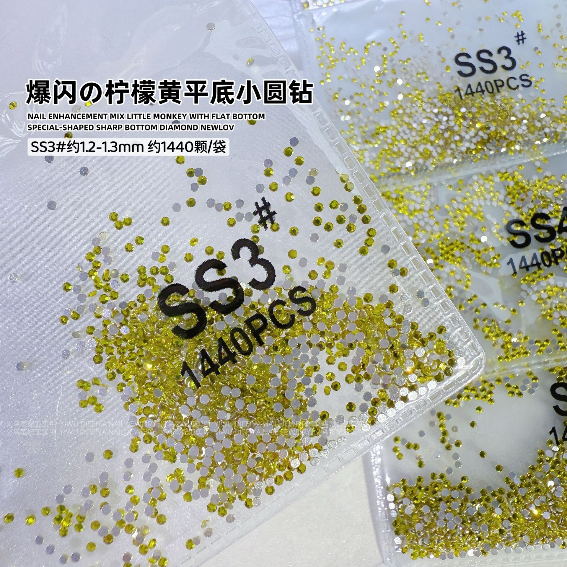 silver bottom lemon yellow ss3 (1.3mm) about 1440 pcs/bag