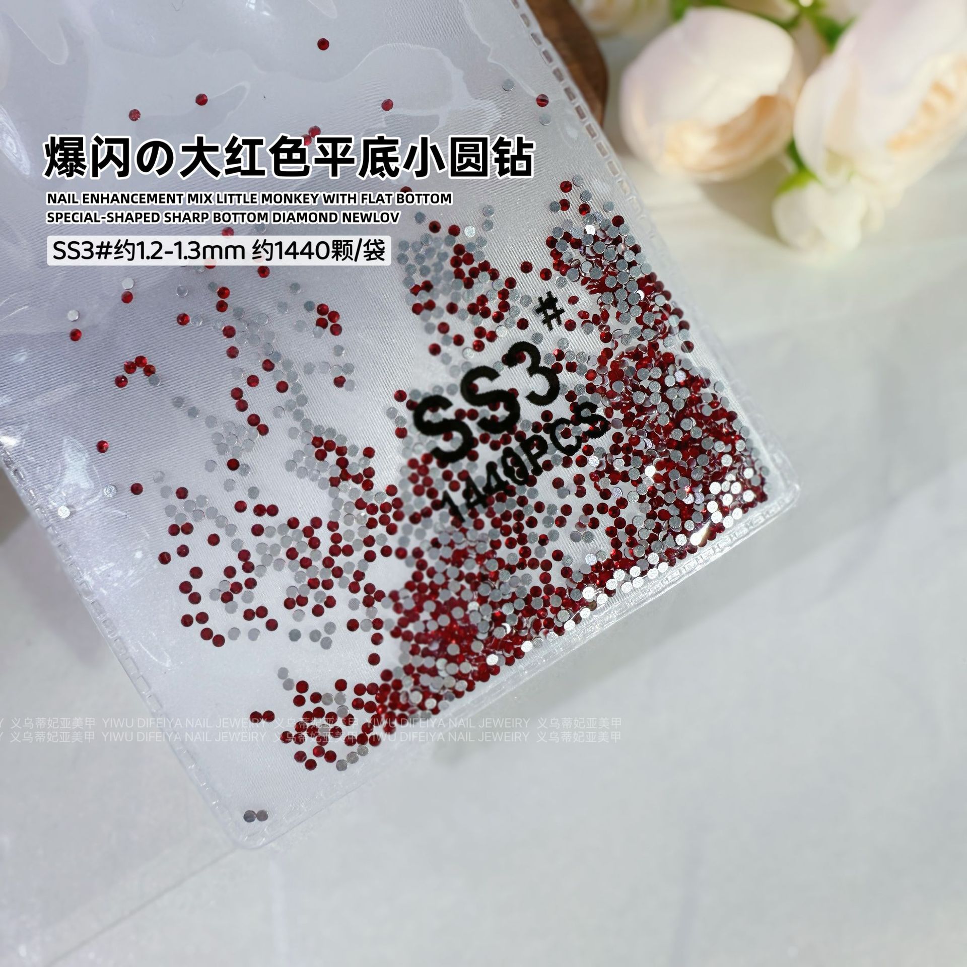 silver bottom red ss3 (1.3mm) about 1440 pcs/bag